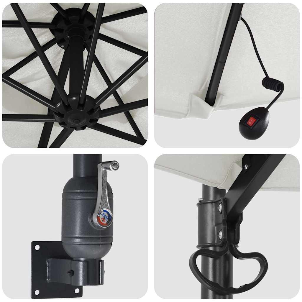 Dieser wandmontierte Gartenparasol vereint Stil und Funktionalität für schattige Momente im Freien, ideal für sonnige Balkone und Terrassen. Mit seiner runden Form und der modernen Sandfarbe sorgt er nicht nur für Schatten, sondern bringt frischen Wind in deinen Außenbereich. Er ist für Erwachsene gedacht, die Komfort im Freien genießen, egal ob beim Entspannen mit einem Buch oder Feiern mit Freunden. Die LED-Leuchten machen die Abende gemütlich unter dem Sternenhimmel. Haltbarkeit: Hergestellt aus hochwertigem pulverbeschichtetem Stahl und 160 g Polyester, ist dieser Parasol für die Herausforderungen im Freien gerüstet. Er bleibt zuverlässig bei jedem Wetter und lässt sich leicht reinigen, sodass du deine Zeit im Freien unbeschwert genießen kannst. Verstellbare Mechanismen: 360-Grad-Neigung und Höhenverstellungen bieten dir die Möglichkeit, den Parasol für perfekten Schatten im ganzen Tag anzupassen. Besonders hilfreich in den heißesten Stunden, wenn du die besteigung brauchst. Integrierte Beleuchtung: Mit eingebauten LED-Leuchten, die kaltes weißes Licht abgeben, sorgt der Parasol für angenehme Abendstunden. Genieße lange Sommernächte mit Freunden und schaffen eine gemütliche Stimmung. Platzersparnis: Die Wandmontage spart Platz und benötigt keinen schweren Fuß, ideal für kleinere Balkone und Terrassen. So kannst du deinen Außenbereich genießen, ohne zu viel Platz zu beanspruchen. Wetterbeständigkeit: Dank UV-beständigen und wasserabweisenden Eigenschaften kann dieser Parasol verschiedenen Wetterbedingungen mühelos standhalten. Du musst dir im Sommer keine Sorgen machen, und die wasserabweisende Beschichtung sorgt dafür, dass er auch bei Regen oder Sonnenschein gut aussieht.