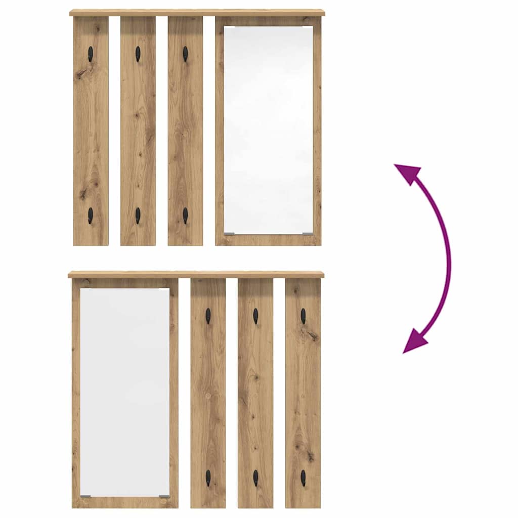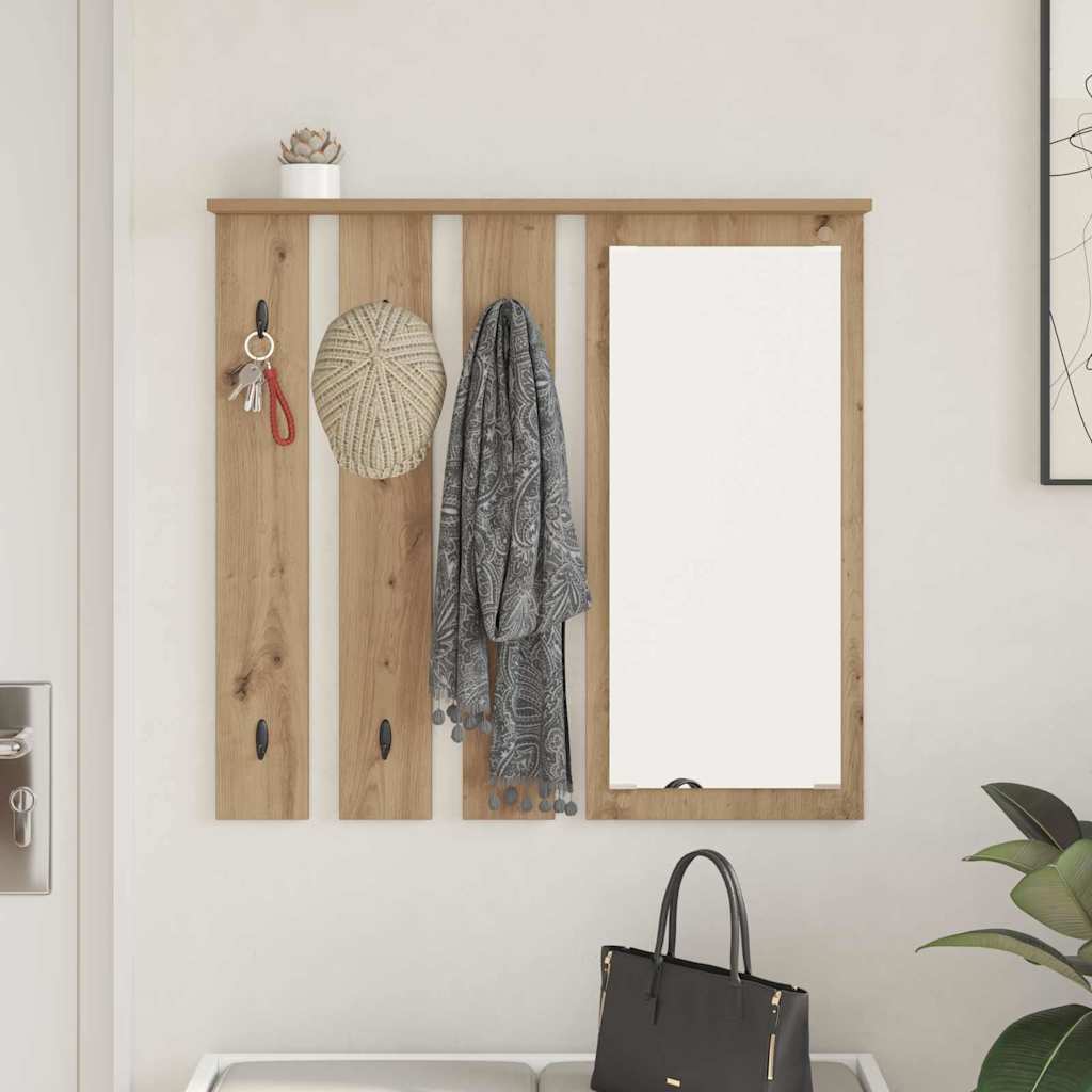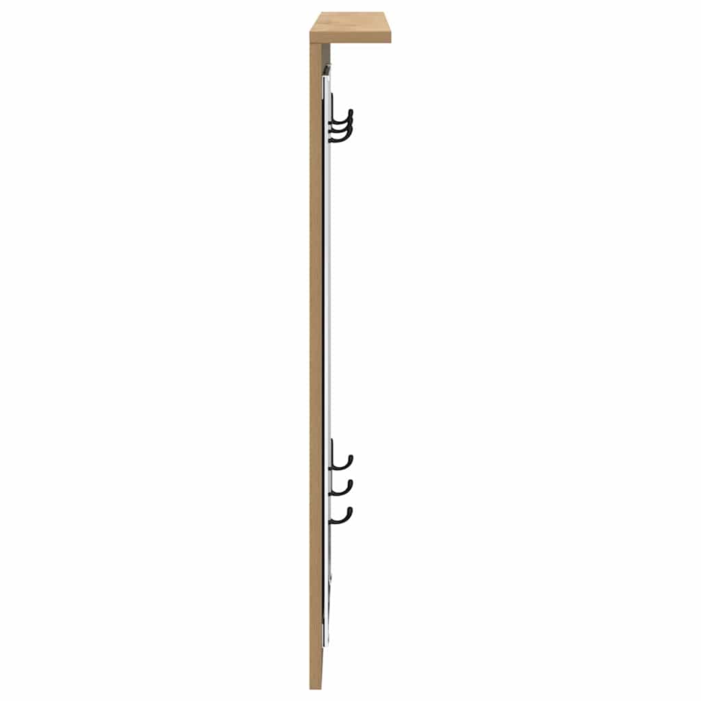 Das Flurregal bringt Funktionalität und modernen Stil zusammen. Es ist perfekt für Eingangsbereiche und hilft dir, Mäntel aufzuhängen und Accessoires zu sortieren. Mit klaren Linien und einfachem Design gibt es jedem Zuhause einen zeitgemäßen Touch und nutzt den Raum optimal, ohne den Stil zu vernachlässigen. Es wurde mit Vielseitigkeit entworfen und trägt zu einer freundlichen Atmosphäre bei, während es praktisch bleibt. Ideal für alle, die ihren Eingang sauber und ansprechend halten wollen. Modernes Design: Mit seinem schlanken und minimalistischen Look bringt dieser Garderobenständer Stil in jeden Flur. Er fügt sich super in verschiedene Einrichtungsstile ein und verleiht deinem Eingangsbereich modernen Charme, während er deine täglichen Dinge organisiert. Praktische Komponenten: Mit Metallhaken für Jacken, Hüte, Taschen und Schlüssel, bietet dieser Garderobenständer viele Aufbewahrungsmöglichkeiten. Das breite Holzregal ist perfekt, um Deko auszustellen oder wichtige Dinge zu verstauen ? besonders nützlich in schmalen Fluren. Wandmontierte Struktur: Einfach zu installieren, maximiert dieses Design den Platz auf dem Boden. Der stabile Rahmen macht ihn zur idealen Wahl, um enge Stellen aufzuräumen, besonders in geschäftigen Eingangsbereichen. Praktische Tragkraft: Es hält bis zu 20 kg, wobei jedes Regal bis zu 2,5 kg und jeder Haken bis zu 10 kg trägt. Das Teil bietet viel Stauraum, dabei bleibt alles schön ordentlich. Einfache Pflege: Die Holzwerkstoff-Oberfläche ist leicht zu reinigen ? ein schnelles Wischen mit einem feuchten Tuch reicht. Die robusten Materialien sorgen dafür, dass es lange hält und schick aussieht, ohne viel Aufwand. Ideal für Haushalte, die Stil und Bequemlichkeit schätzen.