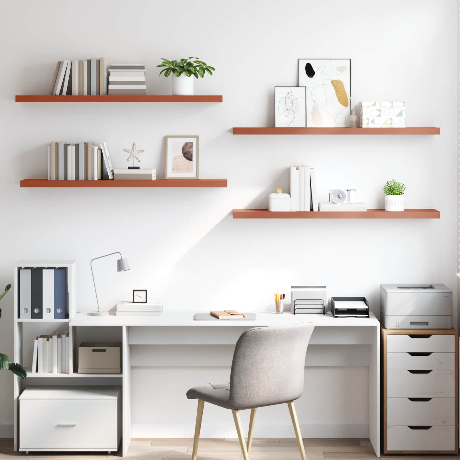 Dieses wandmontierte Regal bringt moderne Eleganz und praktische Aufbewahrung unter einen Hut. Mit seiner schlanken rechteckigen Form ist es ideal für Wohnzimmer, Schlafzimmer, Küchen und Bäder. Es bietet eine tolle Möglichkeit, den Stil deines Zuhauses zu verbessern und gleichzeitig Platz zu sparen. Die glatte Oberfläche und der hochwertige Holzwerkstoff sorgen dafür, dass es robust und schick für jeden Raum ist. Material aus Holzwerkstoff Dieses wandmontierte Regal, aus strapazierfähigem Holzwerkstoff gemacht, sorgt für eine langanhaltende und starke Leistung. Es hält deine wertvollen Sachen sicher und das Material bietet die nötige Robustheit, während es gleichzeitig stylisch aussieht. Wandmontiertes Design Das Regal wird an der Wand montiert, daher ist es ideal für Haushalte, die Platz auf dem Boden sparen und den Stauraum maximieren wollen. Sein schlichtes Design passt zu vielen Einrichtungsstilen und bietet praktische und stilvolle Flexibilität. So kannst du Dekorationen, Bücher oder Küchenutensilien hoch oben präsentieren und Platz im Raum freimachen. Nahtlos modern Das Regal spiegelt moderne Designprinzipien wider und passt perfekt in moderne Räume, die durch klare Linien und schlichte Ornamente gekennzeichnet sind. Seine glatte Oberfläche sorgt für ein elegantes Finish und erfüllt die Anforderungen eines funktionalen Lebensstils. Die visuelle Einfachheit macht es zu einem vielseitigen Stück, das in verschiedenen Gestaltungsthemen funktioniert. Breite Einsatzmöglichkeiten Egal, ob Wohnzimmer oder Bad ? dieses Regal ist super vielseitig und erhöht die Attraktivität jeder Umgebung. Platziere es in der Küche oder bringe einen Hauch von Eleganz in dein Schlafzimmer. Es passt sich verschiedenen Raumstilen und Funktionen an und zeigt sein durchdachtes Design. Einfache Pflege Es ist total unkompliziert, das Regal sauber zu halten ? ein einfaches Abwischen mit einem feuchten Tuch reicht aus, um es in top Zustand zu halten. Diese pflegeleichte Eigenschaft macht es ideal für ein geschäftiges Leben, ohne Abstriche bei der attraktiven Optik zu machen.