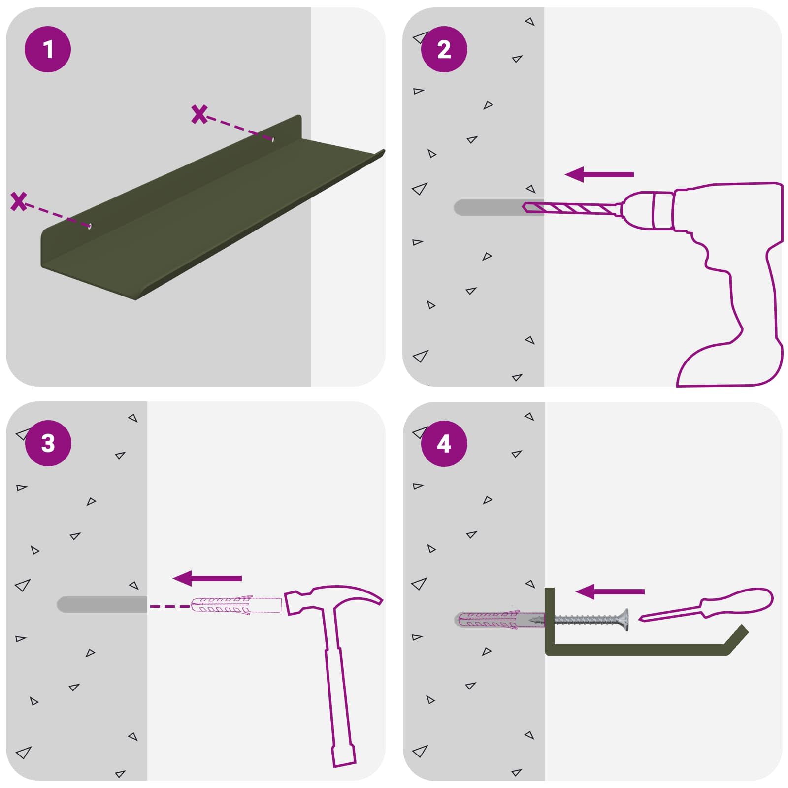 - 1 x Kurze Wandablage :30,9 x 9 x 2,5 (L x B x H)