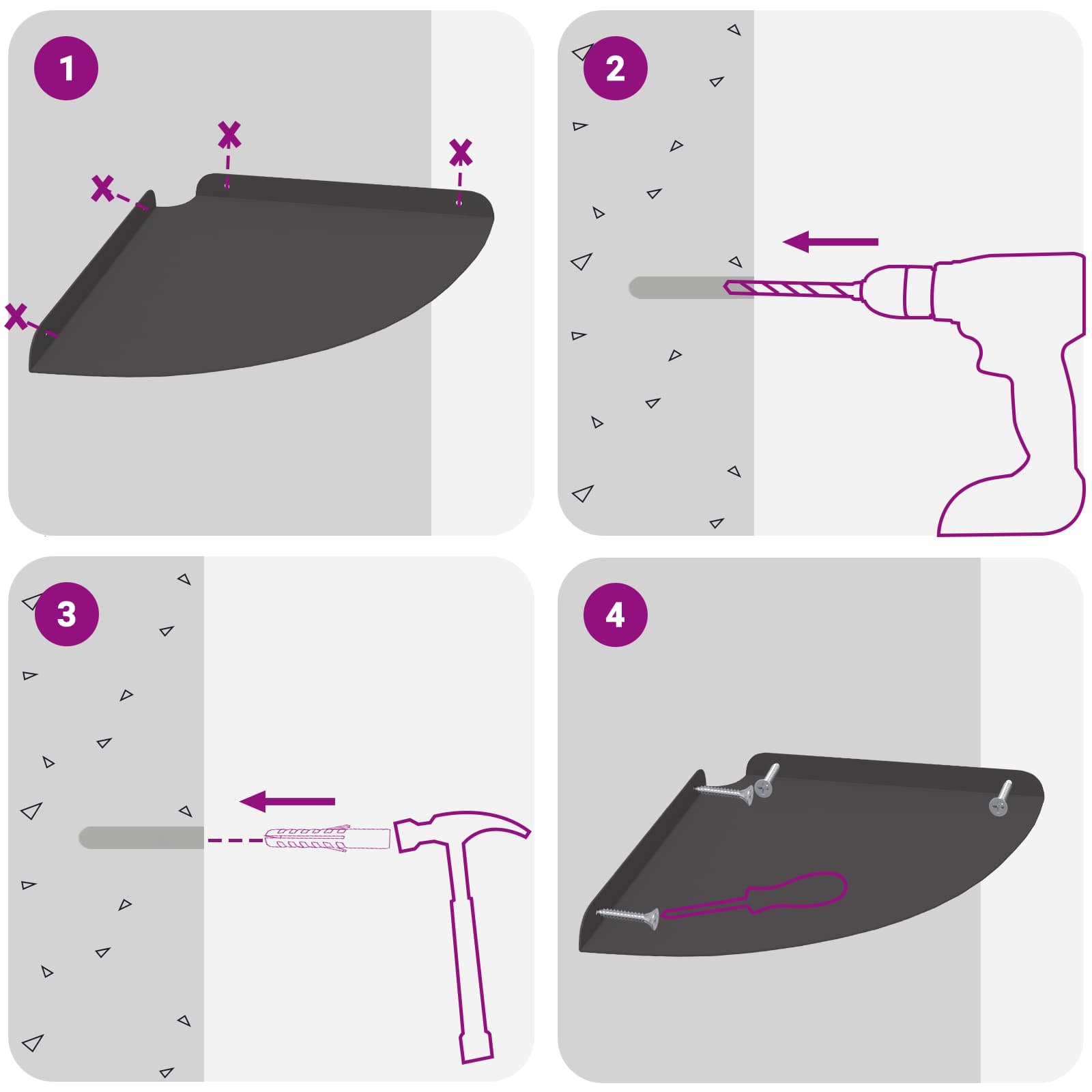 Das Eckregal ist eine schicke und moderne Aufbewahrungslösung, die perfekt in jede Ecke passt. Mit seinem einfachen, aber stylischen Design verbessert es jeden Raum und macht ihn effizienter. Das Regal hat eine viertelrunde Form, die super für alle ist, die ihren Wohnraum optimieren wollen, ohne auf gutes Aussehen zu verzichten. Platzsparendes Design Dieses Regal passt perfekt in die Ecke und nutzt den Raum optimal, ohne zu viel Platz zu beanspruchen. Es ist die ideale Lösung für kleinen Raum und verbindet Funktionalität mit Stil. Matte Metalloberfläche Hergestellt aus Metall mit einer modernen matten Oberfläche, bietet das Regal eine ansprechende, nicht-reflektierende Fläche. Damit passt es gut ins moderne Ambiente und gibt deinen Sachen einen stabilen Halt in jeder Umgebung. Einfache Installation Der Aufbau geht schnell und einfach. Du brauchst nur einen Schraubenzieher, um das Regal zu montieren. So hast du im Handumdrehen mehr Stauraum zur Verfügung. Vielseitige Verwendung Dieses Regal ist flexibel einsetzbar - ob im Badezimmer, in der Küche oder im Wohnzimmer. Du kannst es für Deko, Toilettenartikel oder Küchenutensilien nutzen und damit deine Ordnung auf einfache Weise halten. Pflegewartung Die Reinigung ist kinderleicht: Einfach mit einem feuchten Tuch abwischen und auf aggressive Chemikalien verzichten. So bleibt das Regal über die Jahre frisch und pflegeleicht, perfekt für deinen hektischen Lifestyle.