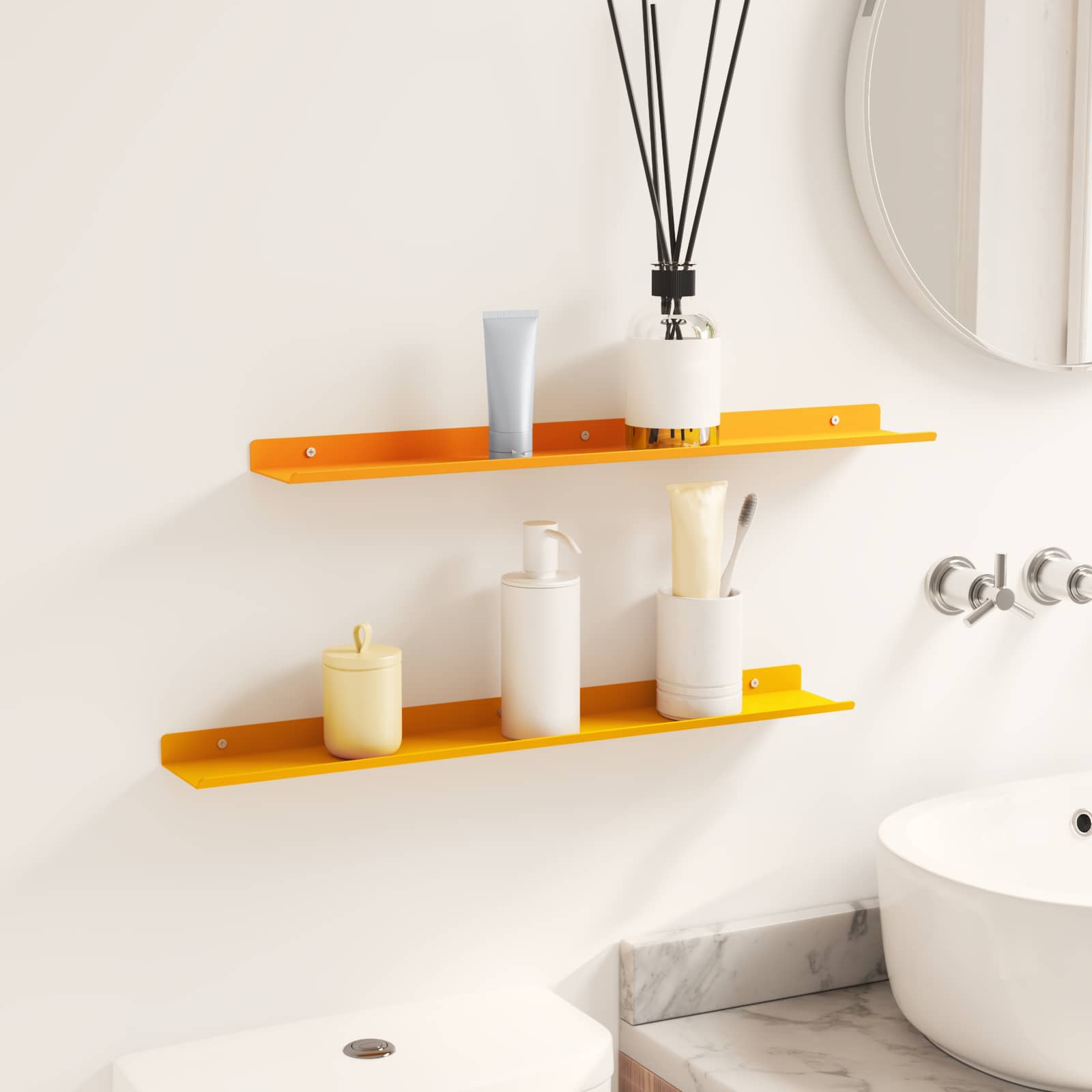 Dieses schlanke Wandregal kombiniert minimalistischen Stil mit modernem Design und ist ein echter Hingucker für jedes Zuhause. Die robuste Stahlkonstruktion und die glatte matte Oberfläche verleihen dem Regal eine elegante Note und gleichzeitig eine vielseitige Aufbewahrungslösung. Ideal für kleine Räume, hilft es den Nutzern, ihre Einrichtung zu verbessern, indem es den perfekten Platz für die Präsentation geliebter Dinge bietet. Ob im Wohnzimmer, Bad oder in der Küche ? dieses praktische Regal peppt jedes Ambiente auf und verleiht ihm eine persönliche Note. Matte Stahlkonstruktion Das Wandregal besteht aus hochwertigem Stahl und bietet eine robuste und langlebige Struktur, die täglichen Belastungen standhält, ohne dabei an Style zu verlieren. Die matte Oberfläche schafft einen modernen Look und sorgt für eine glatte, nicht reflektierende Fläche, die sich super in zeitgenössische Interieurs integriert. Wandmontiertes Design Dieses Regal ist praktisch konzipiert und spart wertvollen Platz auf dem Boden, während es genug Stauraum bietet. Ideal für viele Räume, von Wohnbereichen bis hin zu Küchen, schafft es ein ordentliches und stilvolles Zuhause. Einfache Installation Das mitgelieferte Zubehör macht die Montage mit einfachen Haushaltswerkzeugen kinderleicht. Es wird empfohlen, zu zweit zu arbeiten, um sicherzustellen, dass das Regal fest sitzt, sodass du schnell und effizient dein gewünschtes Layout gestalten kannst. Vielseitige Nutzung Dieses Regal mit erhöhten Kanten ist perfekt für verschiedene Szenarien und eignet sich zur Ablage von Büchern, Vasen oder Toilettenartikeln. Regelmäßiges Abstauben mit einem feuchten Tuch hält das Regal frisch und sauber, ohne aggressive Reiniger zu benutzen, was es zu einem unauffälligen, aber effektiven Accessoire für dein Zuhause macht. Mühelose Pflege Die Pflege des eleganten Wandregals ist super einfach: Wische einfach ab, um Staub zu entfernen, und vermeide aggressive chemische Reinigungsmittel, um die Oberfläche zu schonen. Diese einfache Pflege-Routine sorgt für langfristige Freude und frisches Aussehen.