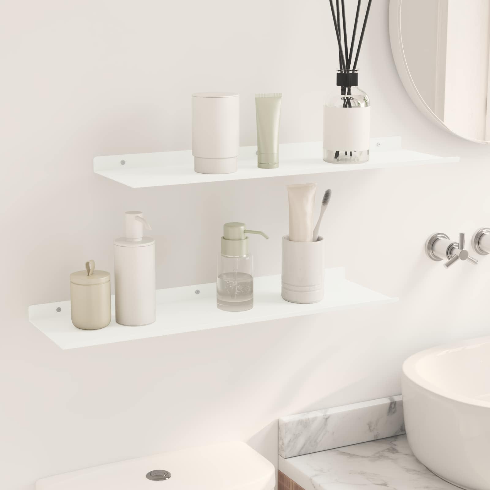 Dieses schlanke Wandregal kombiniert minimalistischen Stil mit modernem Design und ist ein echter Hingucker für jedes Zuhause. Die robuste Stahlkonstruktion und die glatte matte Oberfläche verleihen dem Regal eine elegante Note und gleichzeitig eine vielseitige Aufbewahrungslösung. Ideal für kleine Räume, hilft es den Nutzern, ihre Einrichtung zu verbessern, indem es den perfekten Platz für die Präsentation geliebter Dinge bietet. Ob im Wohnzimmer, Bad oder in der Küche ? dieses praktische Regal peppt jedes Ambiente auf und verleiht ihm eine persönliche Note. Matte Stahlkonstruktion Das Wandregal besteht aus hochwertigem Stahl und bietet eine robuste und langlebige Struktur, die täglichen Belastungen standhält, ohne dabei an Style zu verlieren. Die matte Oberfläche schafft einen modernen Look und sorgt für eine glatte, nicht reflektierende Fläche, die sich super in zeitgenössische Interieurs integriert. Wandmontiertes Design Dieses Regal ist praktisch konzipiert und spart wertvollen Platz auf dem Boden, während es genug Stauraum bietet. Ideal für viele Räume, von Wohnbereichen bis hin zu Küchen, schafft es ein ordentliches und stilvolles Zuhause. Einfache Installation Das mitgelieferte Zubehör macht die Montage mit einfachen Haushaltswerkzeugen kinderleicht. Es wird empfohlen, zu zweit zu arbeiten, um sicherzustellen, dass das Regal fest sitzt, sodass du schnell und effizient dein gewünschtes Layout gestalten kannst. Vielseitige Nutzung Dieses Regal mit erhöhten Kanten ist perfekt für verschiedene Szenarien und eignet sich zur Ablage von Büchern, Vasen oder Toilettenartikeln. Regelmäßiges Abstauben mit einem feuchten Tuch hält das Regal frisch und sauber, ohne aggressive Reiniger zu benutzen, was es zu einem unauffälligen, aber effektiven Accessoire für dein Zuhause macht. Mühelose Pflege Die Pflege des eleganten Wandregals ist super einfach: Wische einfach ab, um Staub zu entfernen, und vermeide aggressive chemische Reinigungsmittel, um die Oberfläche zu schonen. Diese einfache Pflege-Routine sorgt für langfristige Freude und frisches Aussehen.