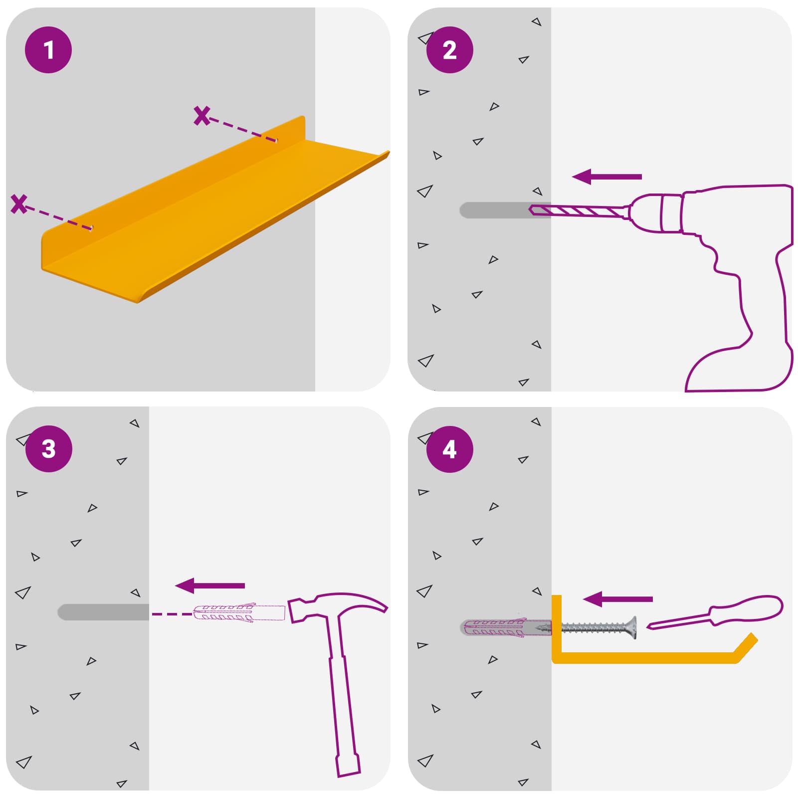 - 1 x Kurze Wandablage :30,9 x 9 x 2,5 (L x B x H)