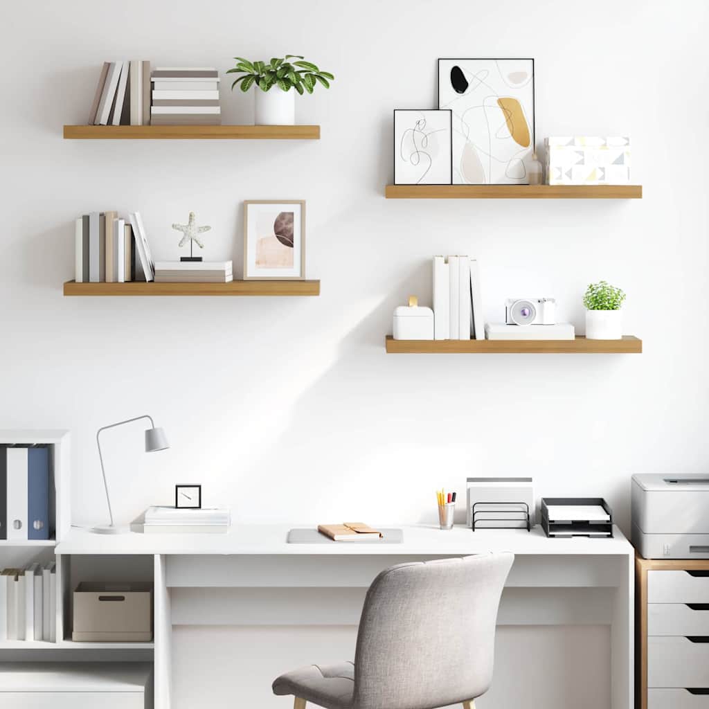 Dieses wandmontierte Regal bringt moderne Eleganz und praktische Aufbewahrung unter einen Hut. Mit seiner schlanken rechteckigen Form ist es ideal für Wohnzimmer, Schlafzimmer, Küchen und Bäder. Es bietet eine tolle Möglichkeit, den Stil deines Zuhauses zu verbessern und gleichzeitig Platz zu sparen. Die glatte Oberfläche und der hochwertige Holzwerkstoff sorgen dafür, dass es robust und schick für jeden Raum ist. Material aus Holzwerkstoff Dieses wandmontierte Regal, aus strapazierfähigem Holzwerkstoff gemacht, sorgt für eine langanhaltende und starke Leistung. Es hält deine wertvollen Sachen sicher und das Material bietet die nötige Robustheit, während es gleichzeitig stylisch aussieht. Wandmontiertes Design Das Regal wird an der Wand montiert, daher ist es ideal für Haushalte, die Platz auf dem Boden sparen und den Stauraum maximieren wollen. Sein schlichtes Design passt zu vielen Einrichtungsstilen und bietet praktische und stilvolle Flexibilität. So kannst du Dekorationen, Bücher oder Küchenutensilien hoch oben präsentieren und Platz im Raum freimachen. Nahtlos modern Das Regal spiegelt moderne Designprinzipien wider und passt perfekt in moderne Räume, die durch klare Linien und schlichte Ornamente gekennzeichnet sind. Seine glatte Oberfläche sorgt für ein elegantes Finish und erfüllt die Anforderungen eines funktionalen Lebensstils. Die visuelle Einfachheit macht es zu einem vielseitigen Stück, das in verschiedenen Gestaltungsthemen funktioniert. Breite Einsatzmöglichkeiten Egal, ob Wohnzimmer oder Bad ? dieses Regal ist super vielseitig und erhöht die Attraktivität jeder Umgebung. Platziere es in der Küche oder bringe einen Hauch von Eleganz in dein Schlafzimmer. Es passt sich verschiedenen Raumstilen und Funktionen an und zeigt sein durchdachtes Design. Einfache Pflege Es ist total unkompliziert, das Regal sauber zu halten ? ein einfaches Abwischen mit einem feuchten Tuch reicht aus, um es in top Zustand zu halten. Diese pflegeleichte Eigenschaft macht es ideal für ein geschäftiges Leben, ohne Abstriche bei der attraktiven Optik zu machen.