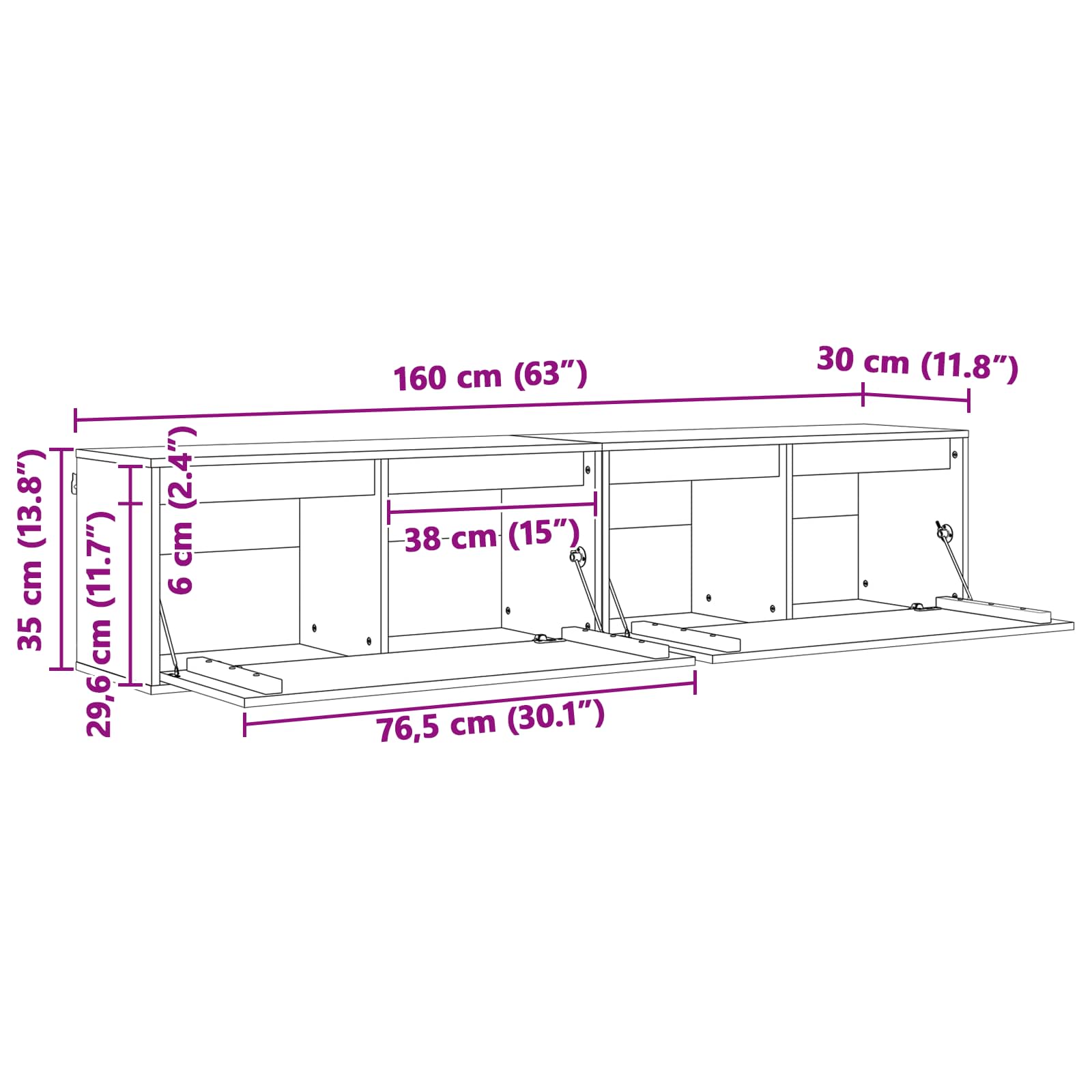 - Gesamtabmessungen: 80 x 30 x 35 cm (L x B x H)