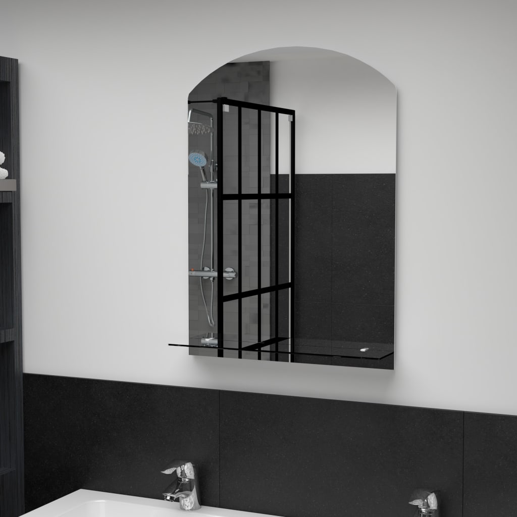 Dieser Wandspiegel mit Regal ist eine praktische und dekorative Ergänzung zu Ihrem Badezimmer, Wohnzimmer oder Schlafzimmer. Das Badmöbel im minimalistischen Stil verfügt über ein praktisches Spiegelregal, auf dem Sie Dekorationsgegenstände oder wichtige Sachen zur Schau stellen können. Unser moderner Badezimmerspiegel mit Regal besteht aus gehärtetem Glas, was seine Haltbarkeit gewährleistet. Der Spiegel kann einfach an der Wand montiert werden.