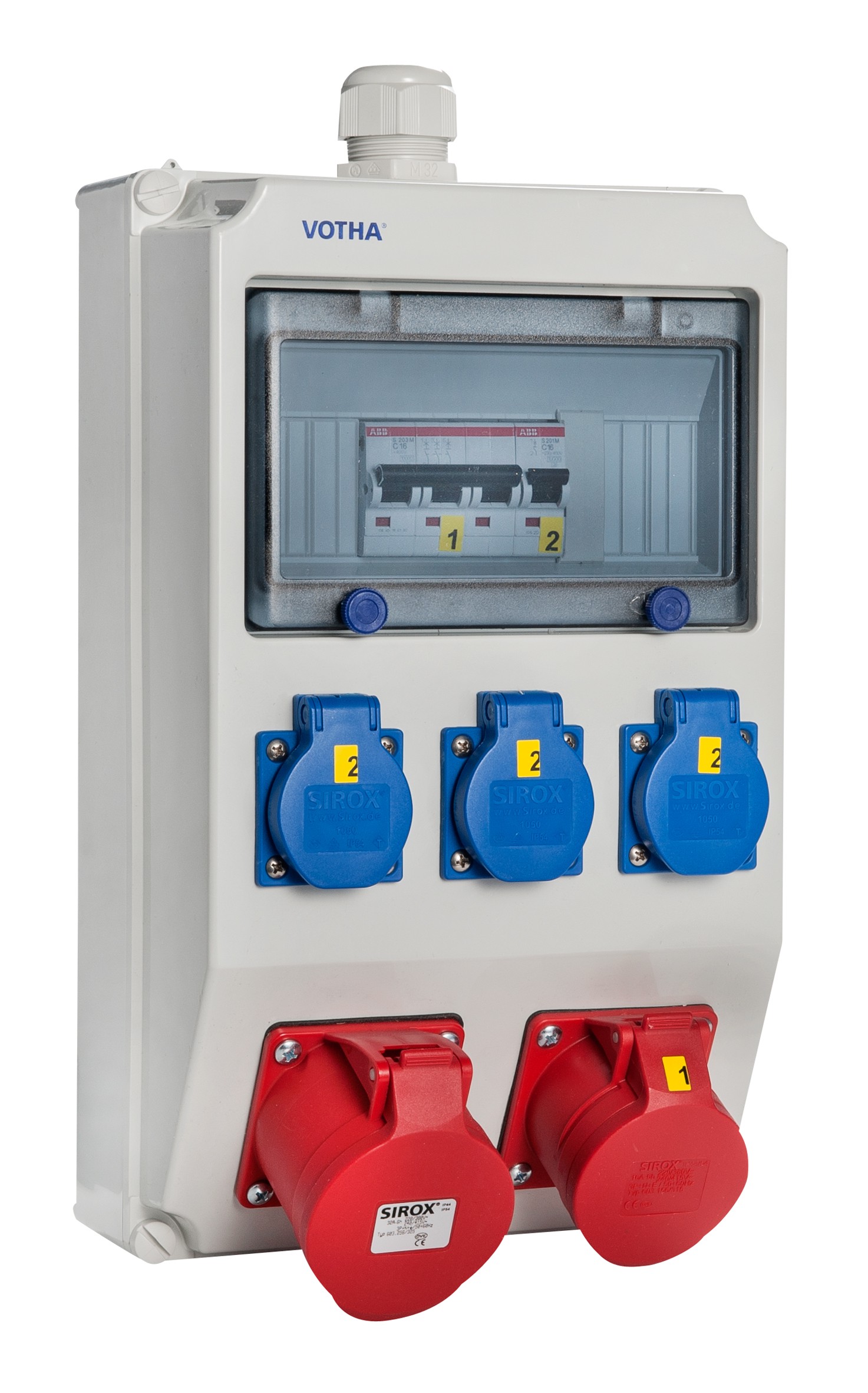 schlagfesten Makrolonabdeckung eingebaut - die Steckdosen sind mit selbstschließenden Klappdeckeln