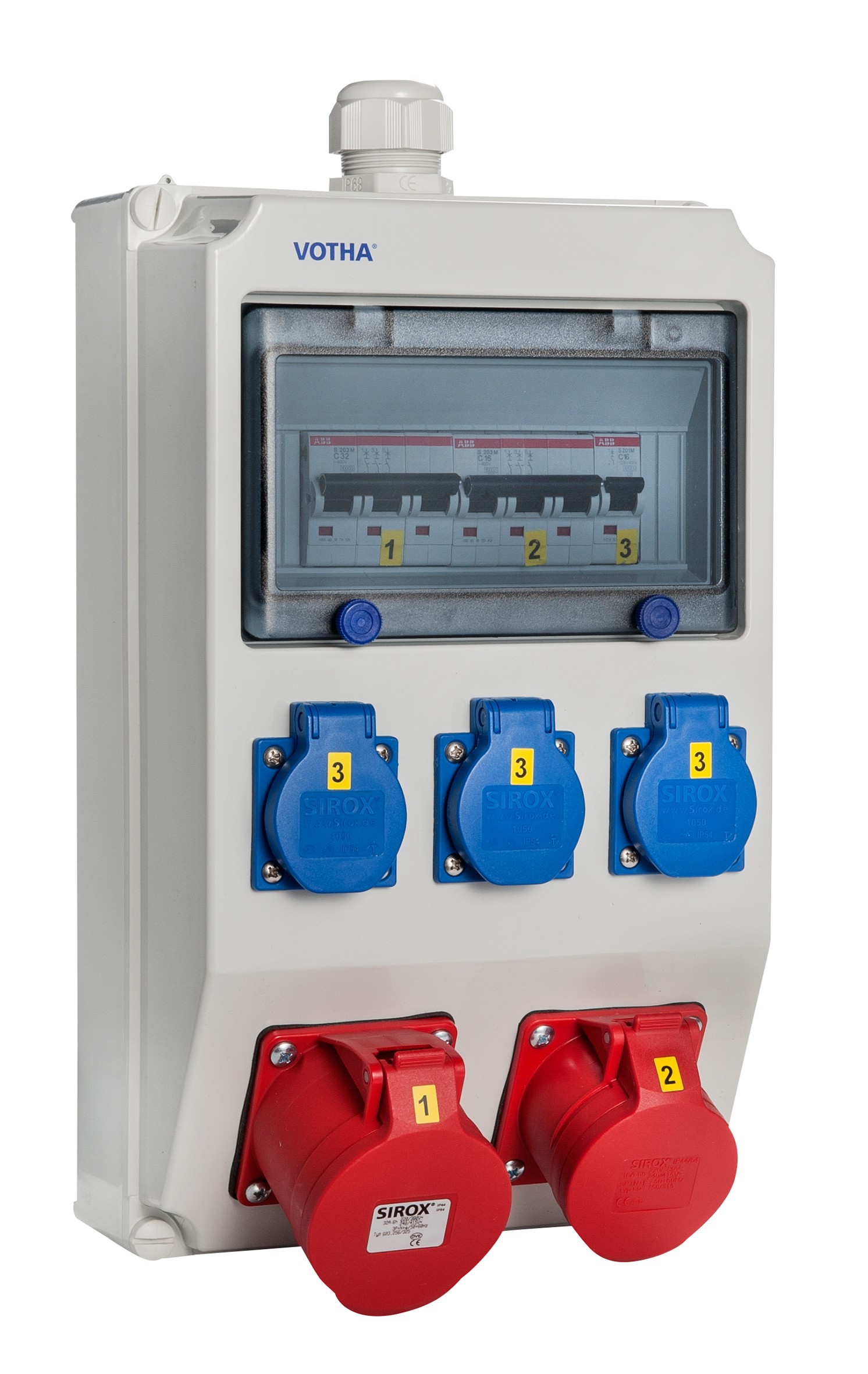 schlagfesten Makrolonabdeckung eingebaut - die Steckdosen sind mit selbstschließenden Klappdeckeln