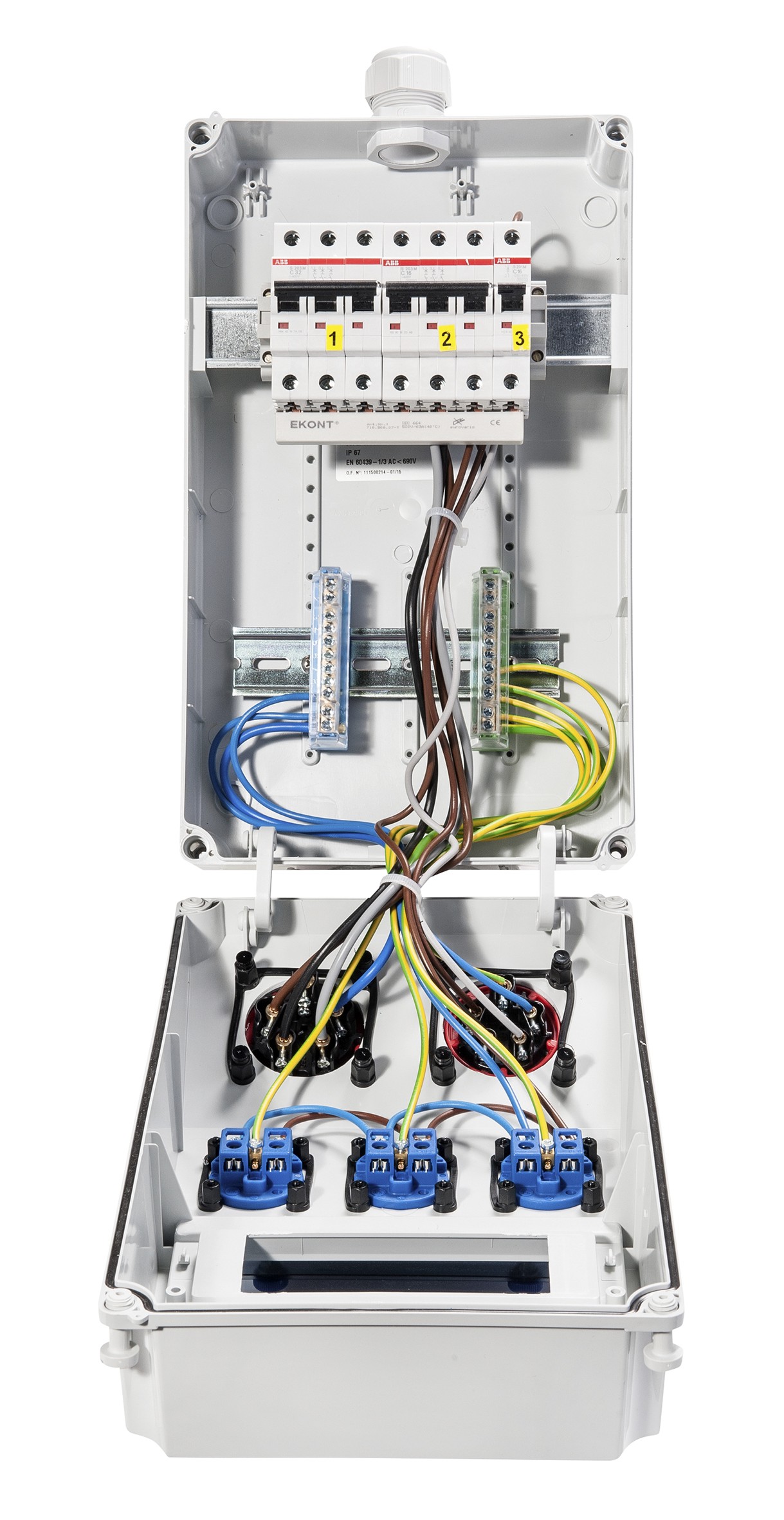 Die kompakte Stromverteilung zur festen Wandmontage,