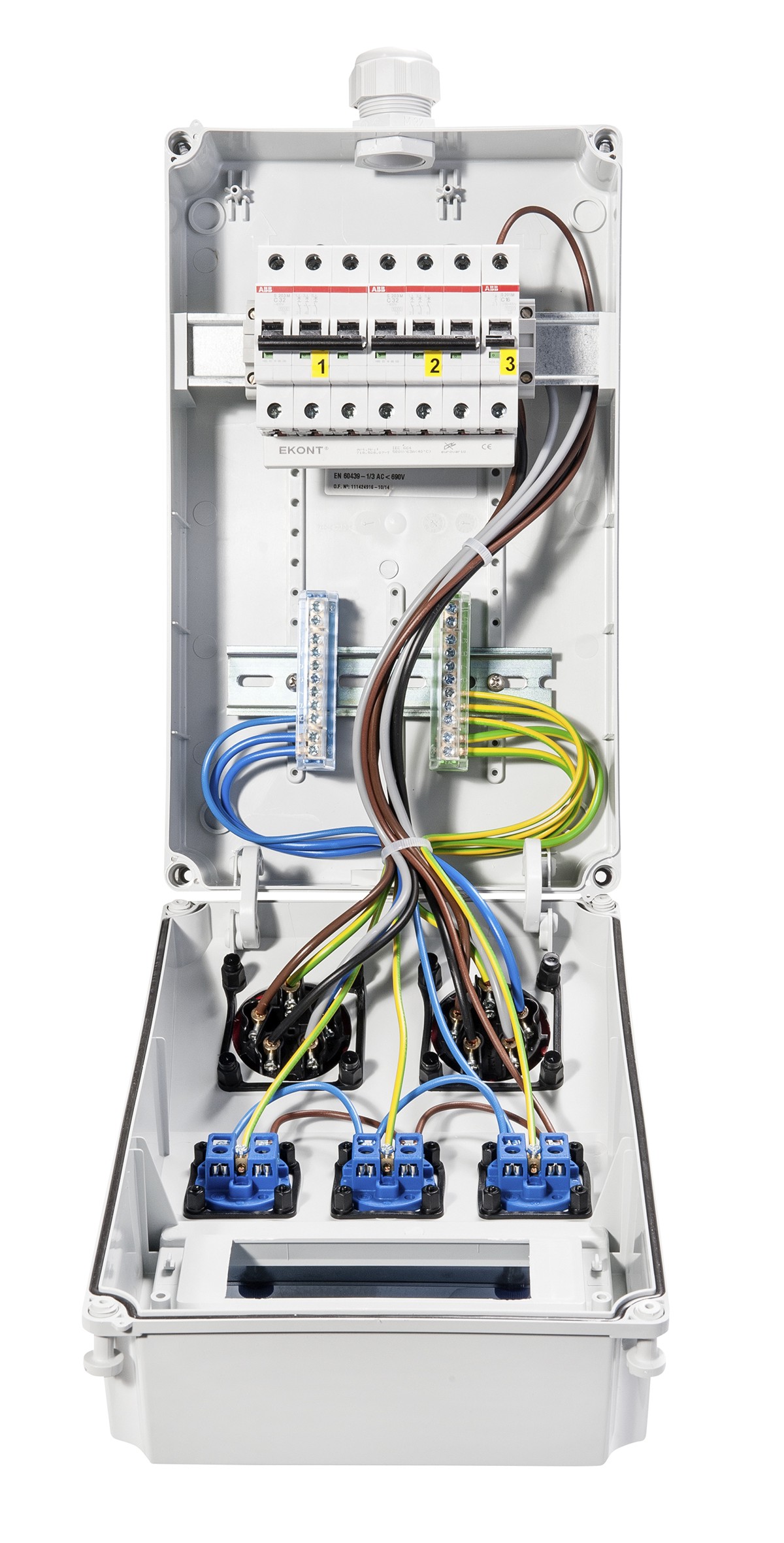 Die kompakte Stromverteilung zur festen Wandmontage,