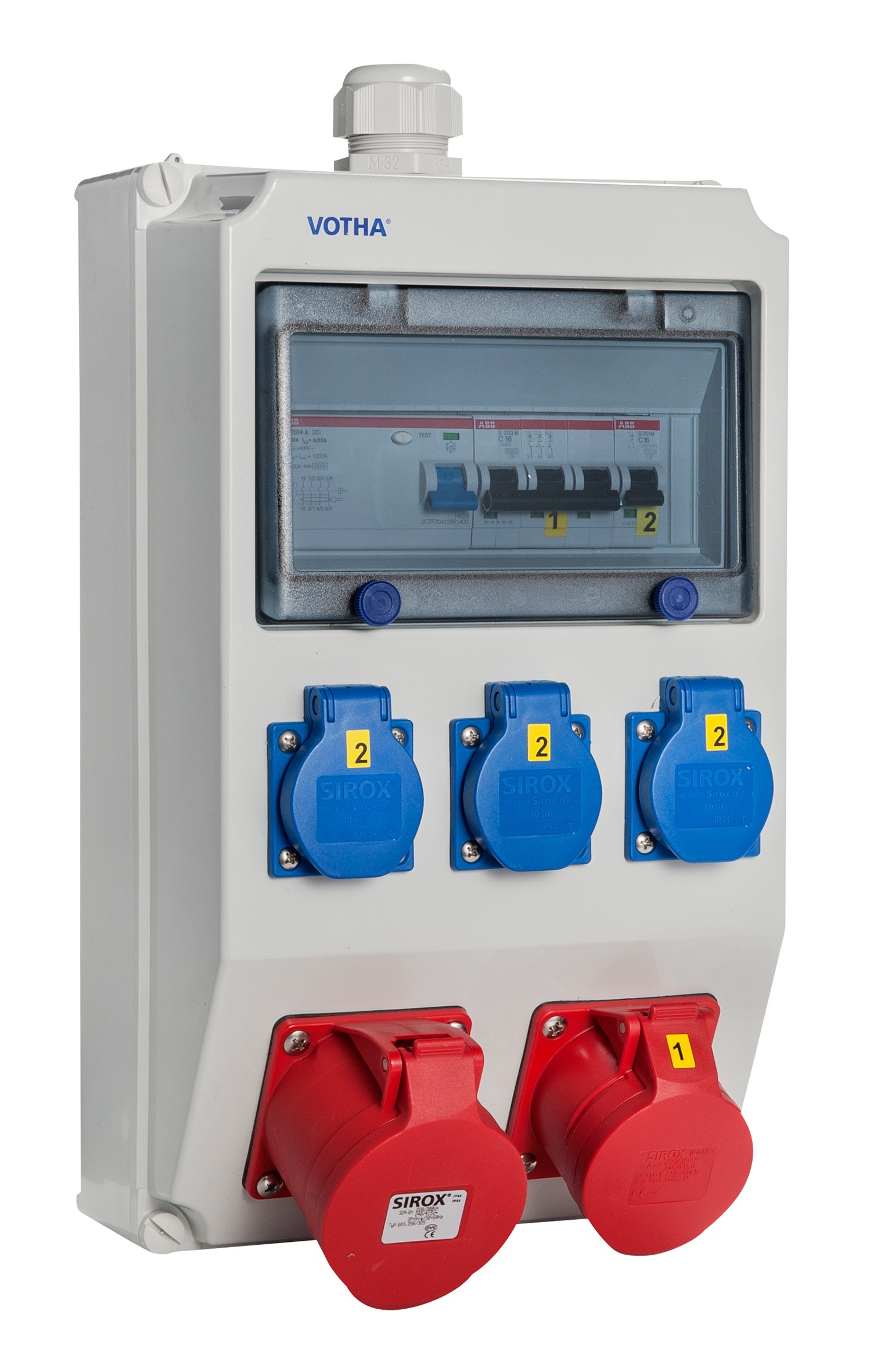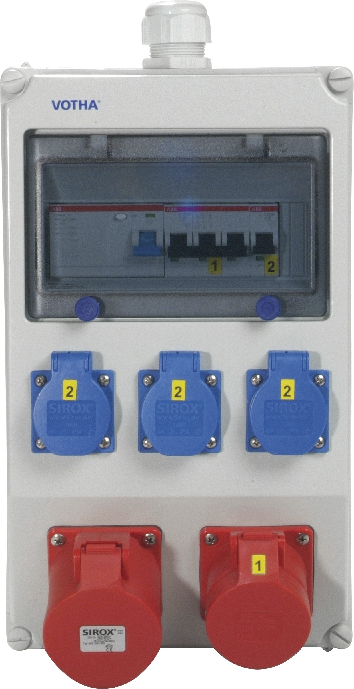 schlagfesten Makrolonabdeckung eingebaut - die Steckdosen sind mit selbstschließenden Klappdeckeln