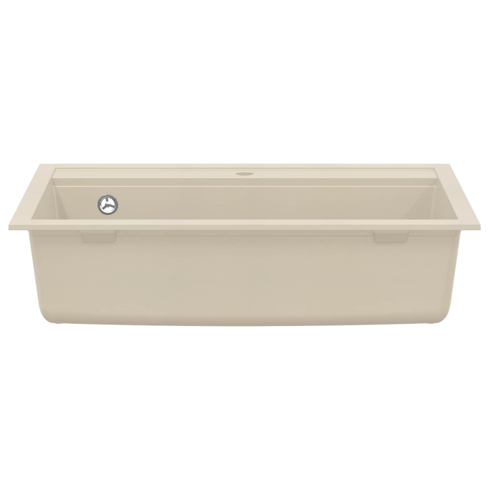 Diese moderne Küchenspüle ist der Inbegriff von Stil und Funktion. Sie wurde entwickelt, um jede zeitgenössische Küche zu verschönern. Die Spüle kombiniert schlichte Schönheit mit praktischer Nützlichkeit und ist ein echtes Must-Have für deinen Kochbereich. Ihre rechteckige Form passt perfekt zu verschiedenen Arbeitsplatten und bietet viele Möglichkeiten für unterschiedliche Küchengestaltungen. Die glatte Oberfläche und der minimalistischen Look machen sie zum Blickfang in deinem Zuhause ? ideal für Köche und Hobbyköche. Stell dir vor, wie elegant sie beim Kochen, Reinigen und alles dazwischen aussieht. Granite und Harz-Kombination Die Spüle besteht aus einer Kombination von Granit und Harz, die eine perfekte Balance zwischen Schönheit und Haltbarkeit bietet. Das schicke Aussehen wird durch Materialien ergänzt, die für ihre Langlebigkeit bekannt sind und dafür sorgen, dass die Spüle über die Jahre hinweg ein Hingucker bleibt. Hitze- und Kratzfest Sie wurde entwickelt, um den Anforderungen einer lebhaften Küche standzuhalten und hält Temperaturen bis zu 280 °C aus. Optimal für heiße Töpfe und Pfannen, zudem kratzfest, sodass die Oberfläche immer schön bleibt. Aufgesetztes Design Das aufgesetzte Design ermöglicht eine einfache Installation und sorgt dafür, dass nichts ausläuft oder verschüttet wird. Es ist einfach zu integrieren und steigert die Effizienz in der Küche. Korbabfluss für einfache Reinigung Mit dem praktischen Korbabfluss wird die Abfallentsorgung leichter, und Verstopfungen werden verringert. Diese Funktion verbessert den Reinigungsprozess und sorgt dafür, dass deine Küche immer ordentlich aussieht. Moderne Ästhetik Die Spüle strahlt moderne Eleganz aus, geprägt durch einfache Formen und klare Linien. Ihr minimalistisches Design passt zu jedem Küchenstil, von modern bis klassisch und schafft eine stilvolle Atmosphäre.