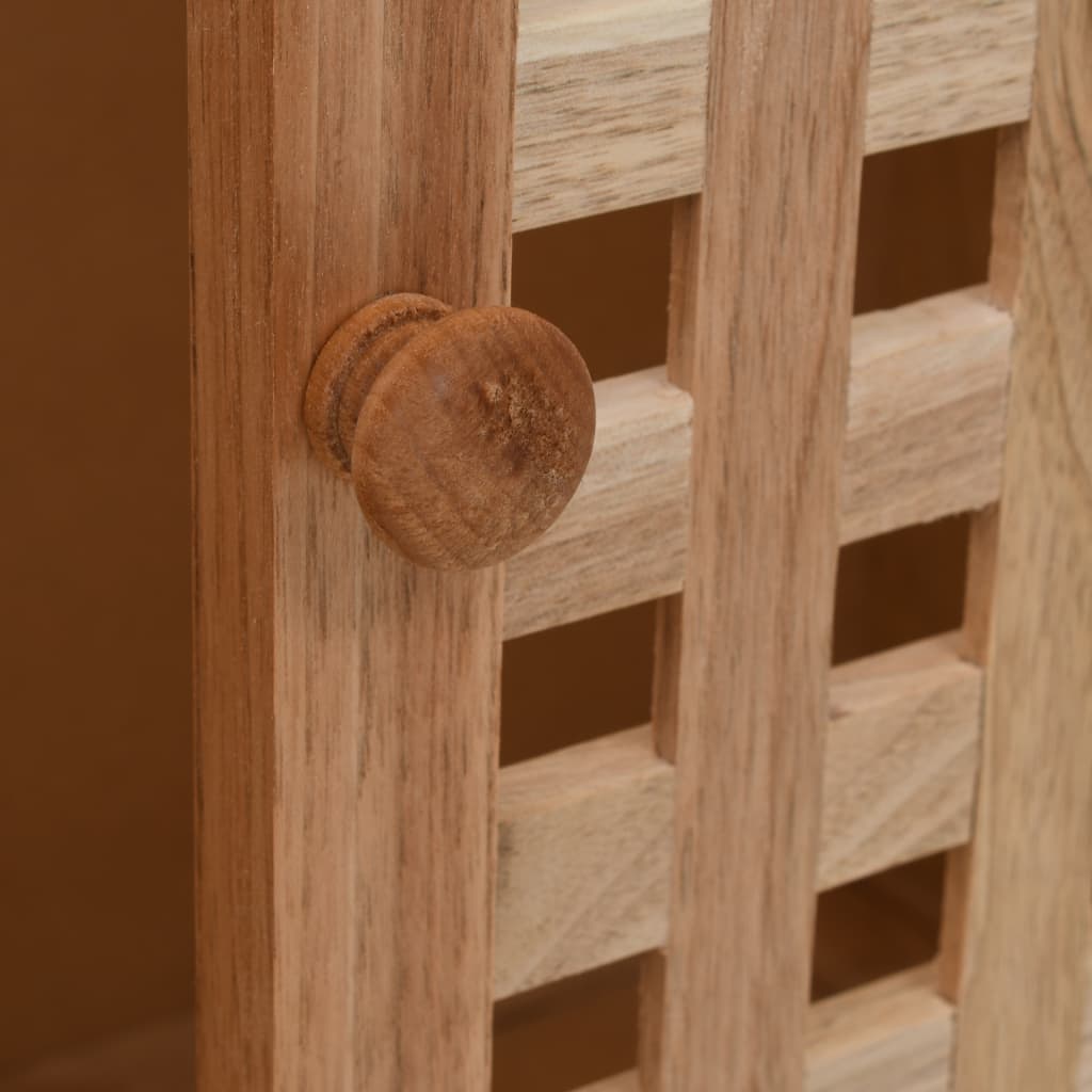 Der Waschbeckenunterschrank aus Walnuss-Massivholz und Sperrholz ist eine auffällige Ergänzung für jedes Badezimmer. Der Badezimmerschrank verfügt über zwei Türen mit Gitter-Design, das für die Belüftung des Inhalts sorgt, aber auch einen eleganten Charme versprüht. Der Badschrank aus Holz ist stabil, langlebig und verleiht deinem Zuhause einen Hauch von natürlichem Stil. Der Badunterschrank passt perfekt zu fast jedem Waschbecken und ist gleichzeitig ein ideales Aufbewahrungsmöbel für das Badezimmer. Der Waschbeckenunterschrank ist einfach zu montieren. Hinweis: Holz ist ein Naturprodukt, daher können die Farben von Möbelstück zu Möbelstück variieren; die Lieferung erfolgt nach dem Zufallsprinzip.