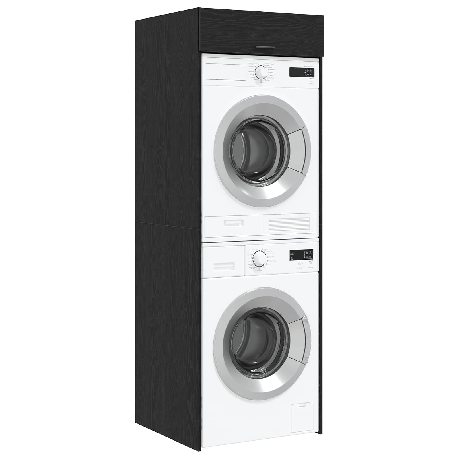 Dieses moderne Waschmaschinenregal bietet viel Stauraum und sieht dabei elegant aus. Die klaren Linien und das minimalistische Design bringen einen Hauch von Modernität und verbinden Style mit Funktionalität. Es hilft dir, deine Wäschereien ordentlich zu halten und macht jedes zeitgemäße Badezimmer-Setup noch ansprechender. Holzwerkstoff: Der Schrank ist aus Wasserabweisendem Holzwerkstoff, was Langlebigkeit garantiert und gut ins Badezimmer passt, das oft feucht ist. Dieses Material sorgt dafür, dass der Schrank das hält, was er verspricht. Tür mit Scharnieren: Mit Türen, die Scharniere haben, ist der Schrank einfach zu nutzen. So kannst du die Türen easy öffnen und schließen, was im Alltag mehr Komfort bringt. Schwarze Stangen-Griffe: Die stylischen, schwarzen Stangen-Griffe bieten einen coolen Kontrast zum Holzwerkstoff. Sie sind ergonomisch und machen das Öffnen super einfach, während sie dem modernen Look treu bleiben. Diese Griffe sind sowohl schick als auch praktisch ? designed für Effizienz und Eleganz. Geräumiger Stauraum: Der Schrank hat genug Platz für Handtücher, Toilettenartikel und Reinigungsmittel. Er hilft dir, alles ordentlich zu lagern und deinen Raum übersichtlich zu halten. Montage und Wartung: Der Schrank wird montiert und mit nur zwei Personen und einem Schraubendreher aufgebaut. Für die Pflege reicht es, ihn regelmäßig mit einem feuchten Tuch abzuwischen. So bleibt er immer sauber und sieht gut aus, ohne viel Aufwand.
