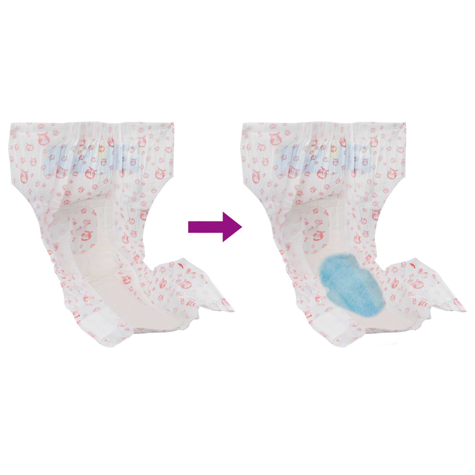 - Material: Vliesstoff-Oberfläche, Tissuepapier, Fluff-Pulpe, Super absorbierendes Polymer , PE-Folienrückseite