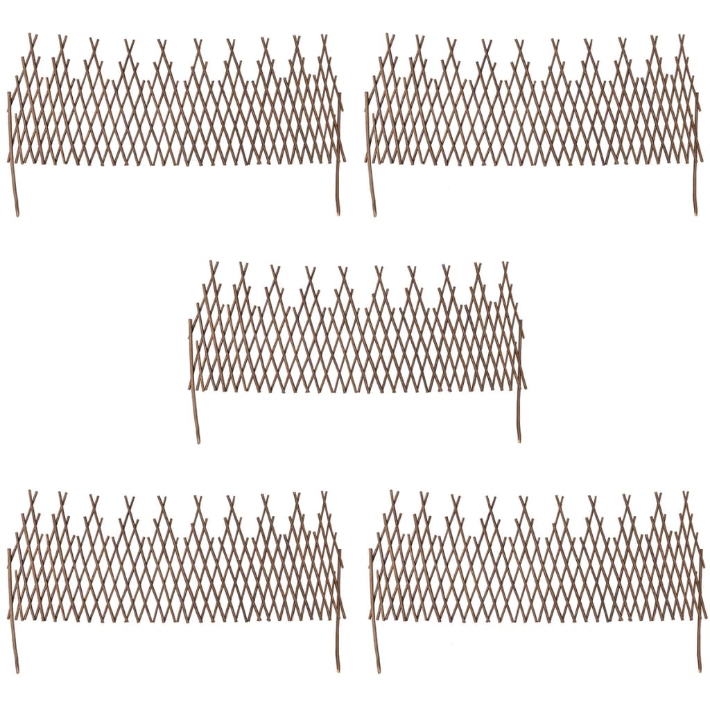 Dieses attraktive und praktische Weiden-Spalierzaun-Set ist eine schöne Ergänzung zu jedem Garten. Sie können es als Gartenteiler oder Kletterhilfe verwenden. Dieser Weiden-Spalierzaun ist bis zu 1,7 m breit. Das erweiterbare Design macht das Zaunelement kompatibel mit Gärten aller Größen und Formen. Dieser robuste Zaun aus wetterbeständiger Weide ist die perfekte Trennwand für Gartenbereiche. Es kann auch als Beeteinfassung entlang Blumenbeeten oder Gehwegen verwendet werden, um ein schönes Ambiente in Ihrem Garten oder auf der Terrasse zu schaffen. Lieferung umfasst 5 Stk.
