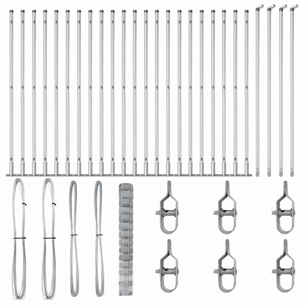 Dieser vidaXL Weidezaun kombiniert robuste Bauweise aus verzinktem Stahl mit Vielseitigkeit und ist eine ideale Barriere für alles im Freien. Sein schicker silberner Look und die solide Konstruktion sichern deinen Bereich und verschönern deinen Außenbereich. Perfekt für Häuser, Gärten und Bauernhöfe. Robuste Bauweise: Die verzinkte Stahlkonstruktion sorgt für eine langlebige Barriere, die den Wetterbedingungen standhält und dir Sicherheit gibt. Einfache Montage: Alle wichtigen Teile, inklusive 3 Zaunpaneele und 3 Pfosten, sind für eine einfache Montage ohne zusätzliches Werkzeug enthalten. Flexibler Einsatz: Ideal zum Markieren von Grenzen und für Sicherheit, passt für verschiedene Außenbedürfnisse. Starkes Design: Solide Pfosten sorgen dafür, dass er auch bei rauem Wetter stabil bleibt. Stylisches Aussehen: Mit seiner glatten Oberfläche bringt der Zaun einen modernen Akzent in deinen Außenbereich.