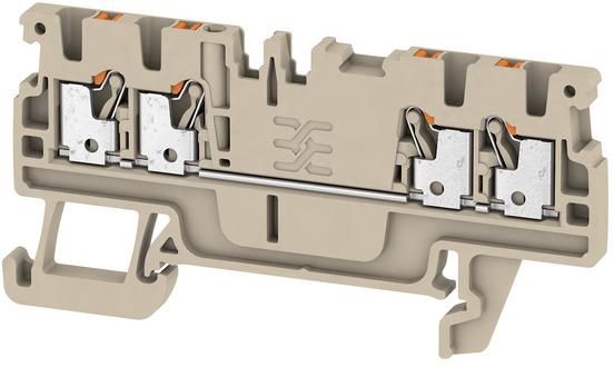 Klemme zum Anschluss oder der Verbindung von Drähten, Adern und Leitungen mit dauerhaft sicherem Kontakt. Gehärteter Stahl für die mechanischen Kräfte und hochwertiges Kupfer mit Zinn-Beschichtung sorgen für beste Leitfähigkeit. Durchgangs-Reihenklemme, PUSH IN, 1.5 mm², 500 V, 17.5 A, Anzahl Anschlüsse: 4, TS 35, dunkelbeige.