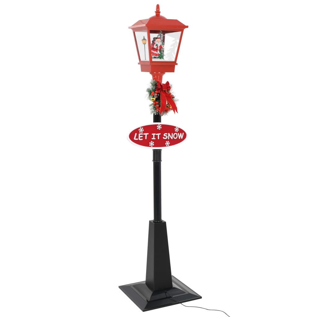 Diese wunderschöne Straßenlampe, die den ganzen Tag über leuchtet und nachts funkelt, wird mit ihrem markanten Design Ihr Weihnachtsfest beleben. Die Lampe ist für den Innen- und Außenbereich geeignet. Ob Sie sie im Freien oder drinnen platzieren, dieses Statement-Stück wird Ihrem Haus und Garten in dieser Saison eine einladende Note und Urlaubsstimmung verleihen. Die integrierte Pumpe transportiert den Schnee vom Boden und spritzt ihn von oben ein. Mit einem festlichen Kranz, einem Weihnachtsmann, Schnee, der in den Lampenschirm fällt, und einem LET IT SNOW-Schild auf dem Pfosten sowie einer fröhlichen Melodie eignet sich die Lampe auch zur Dekoration von gewerblichen Einkaufszentren, um allen mitzuteilen, dass die Feiertage hier sind. Darüber hinaus ist die Weihnachts-Straßenleuchte leicht und langlebig und kann jedes Jahr verwendet werden, was sie zu einer sehr wirtschaftlichen Wahl macht. Die Weihnachts-Straßenleuchte ist einfach zu montieren, da sie über ein einfaches Stecksystem verfügt.