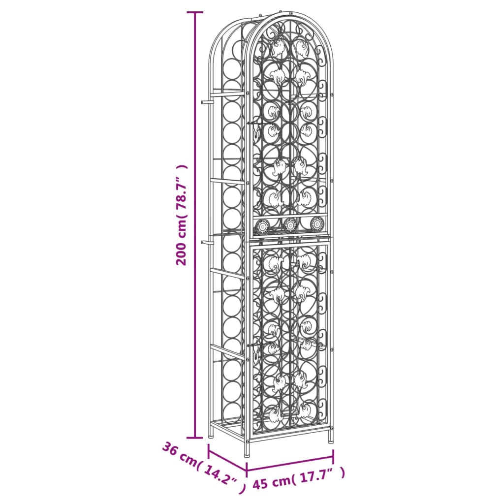 In diesem Weinregal kannst du deine Weine stilvoll aufbewahren, altern lassen und zur Schau stellen! Großes Fassungsvermögen: Dieses Weinregal bietet Platz für bis zu 73 Flaschen, um deinen Stauraum zu maximieren und für Ordnung zu sorgen. Stabile Konstruktion: Dieser Weinflaschenhalter ist aus robustem Schmiedeeisen gefertigt und mit einer schwarzen Pulverbeschichtung versehen, um Oxidation und Rost vorzubeugen. Die mitgelieferten Wandhalterungen verhindern, dass der Weinständer wackelt oder umkippt, sodass er über Jahre hinweg verwendet werden kann. Geeignet für viele Orte: Mit seinem schlichten und eleganten Design eignet sich dieses Weinregal perfekt für den Einsatz in Bars, Weinkellern, Küchen, Restaurants und mehr.Abschließbar: Dieses Weinregal aus Metall lässt sich abschließen, um das Herunterfallen der Weinflaschen zu verhindern und für mehr Sicherheit zu sorgen. Achtung:Um ein Umkippen zu vermeiden, sollte dieses Produkt mit der mitgelieferten Wandhalterung gesichert werden.