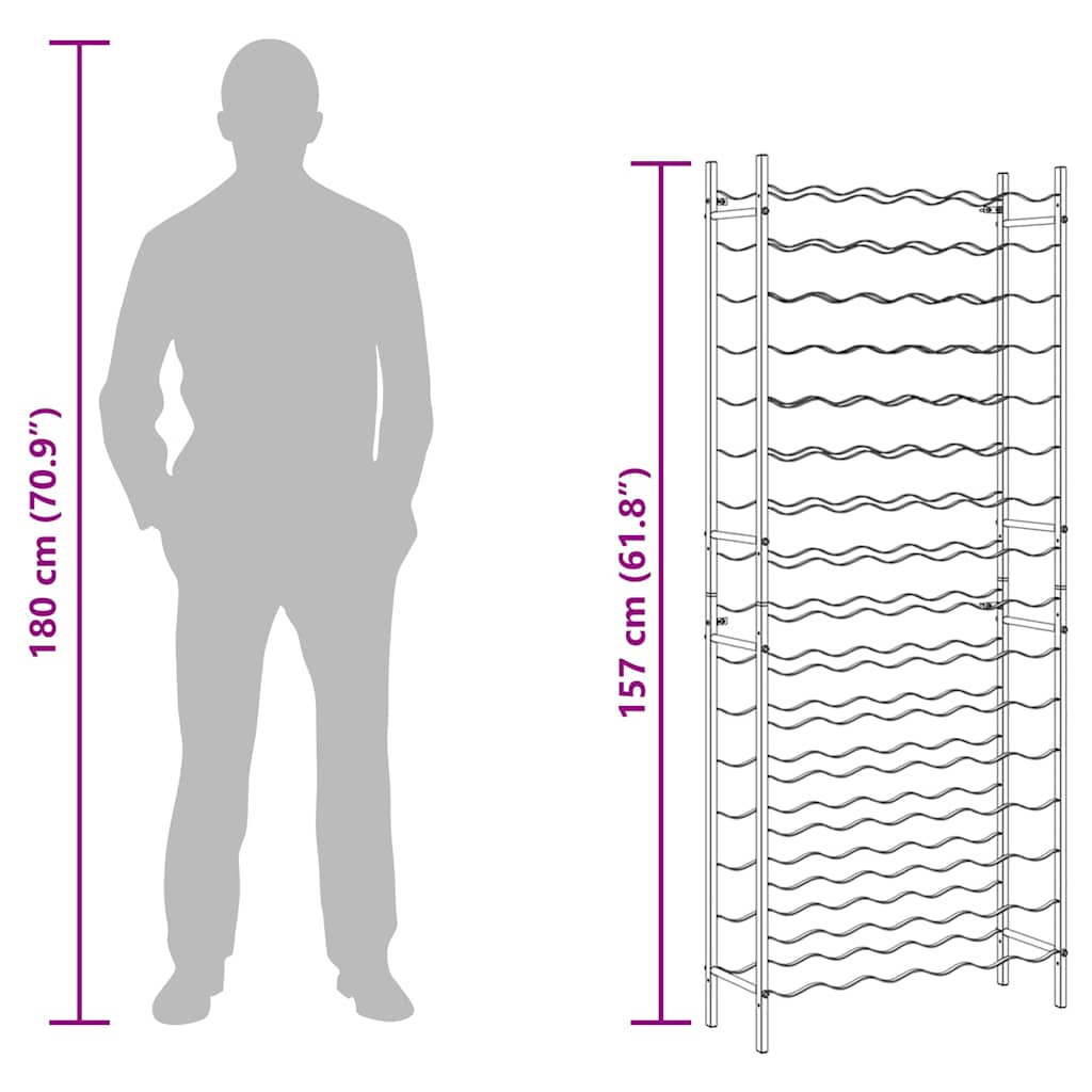 In diesem praktischen Weinregal lassen sich Ihre Lieblingsweine ordentlich aufbewahren. Reichlich Stauraum: Das Weinregal besitzt 16 Ebenen, auf denen bis zu 96 Flaschen Wein Platz finden. Jede Ebene kann 6 Flaschen aufnehmen.Modernes Design: Dieses Weinregal ist auch eine trendige Ergänzung zur Aufbewahrung von Wein in modernen Küchen, Speisekammern und Bars.Hohe Qualität: Das Flaschenregal besteht aus Metall, sodass es nicht rostet und sich nicht verformt. Darüber hinaus verhindert seine äußerst glatte Oberflächen Kratzer auf den Flaschen. ACHTUNG:Um ein Umkippen zu verhindern, muss dieses Produkt mit der mitgelieferten Wandhalterung gesichert werden.