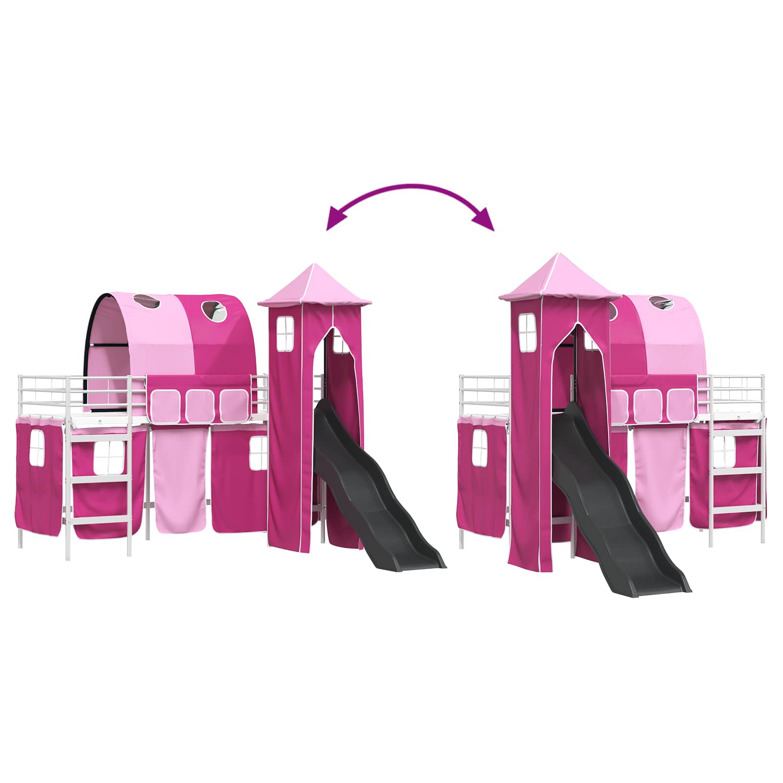 Dieser moderne Hochbett-Rahmen mit Vorhängen, Turm und Rutsche ist die perfekte Lösung für coole Kinderzimmer. Das frische Design sorgt dafür, dass es überall gut aussieht. Mit dem tollen Turm und der aufregenden Rutsche wird die Schlafenszeit zum Erlebnis. Das durchdachte Design macht es möglich, den Platz optimal zu nutzen und passt super zum aktiven Lebensstil von Kindern, denn es fördert Fantasie und Kreativität. So wird das Möbelstück zum echten Highlight im Kinderzimmer. Robuster Metallrahmen: Dieser Metallrahmen ist extrem stabil und hält den Abenteuern aktiver Kinder stand. Die matte Oberfläche sieht super aus und passt zu jedem Kinderzimmer-Stil. Sicherheit und Stabilität sind auch wichtig ? das Bett ist darauf ausgelegt, den täglichen Gebrauch zu überstehen. Spannende Rutsche und Turm: Mit der integrierten Rutsche und dem Turm wird das Schlafzimmer zum Spielplatz. Die Elemente fördern kreatives Spielen und machen es zu mehr als nur einem Bett ? hier wird Lernen mit Spaß kombiniert. Funktionale Vorhänge: Das Bett hat Vorhänge, die einfach zu handhaben sind und für einen ordentlichen Look sorgen. Die coolen blauen und schwarzen Farben der Vorhänge bringen ein bisschen Geheimnis und bieten gleichzeitig die Privatsphäre, wenn nötig. Der Bogen versteckt die Montage und sieht dazu noch gut aus. Matte Oberfläche: Die matte Lackierung hält Fingerabdrücke und Staub fern und sieht einfach schick aus. Das Design ist zeitlos und passt wunderbar in moderne Räume, während die Pflege minimal bleibt. Einfach zu reinigen: Für die Pflege reicht ein feuchtes Tuch, ohne aggressive Chemikalien. Befolge die Montageanweisung des Herstellers, um die Möglichkeiten des Bettes optimal zu nutzen und seine Lebensdauer zu verlängern. So ist es eine langlebige Wahl für Familien.