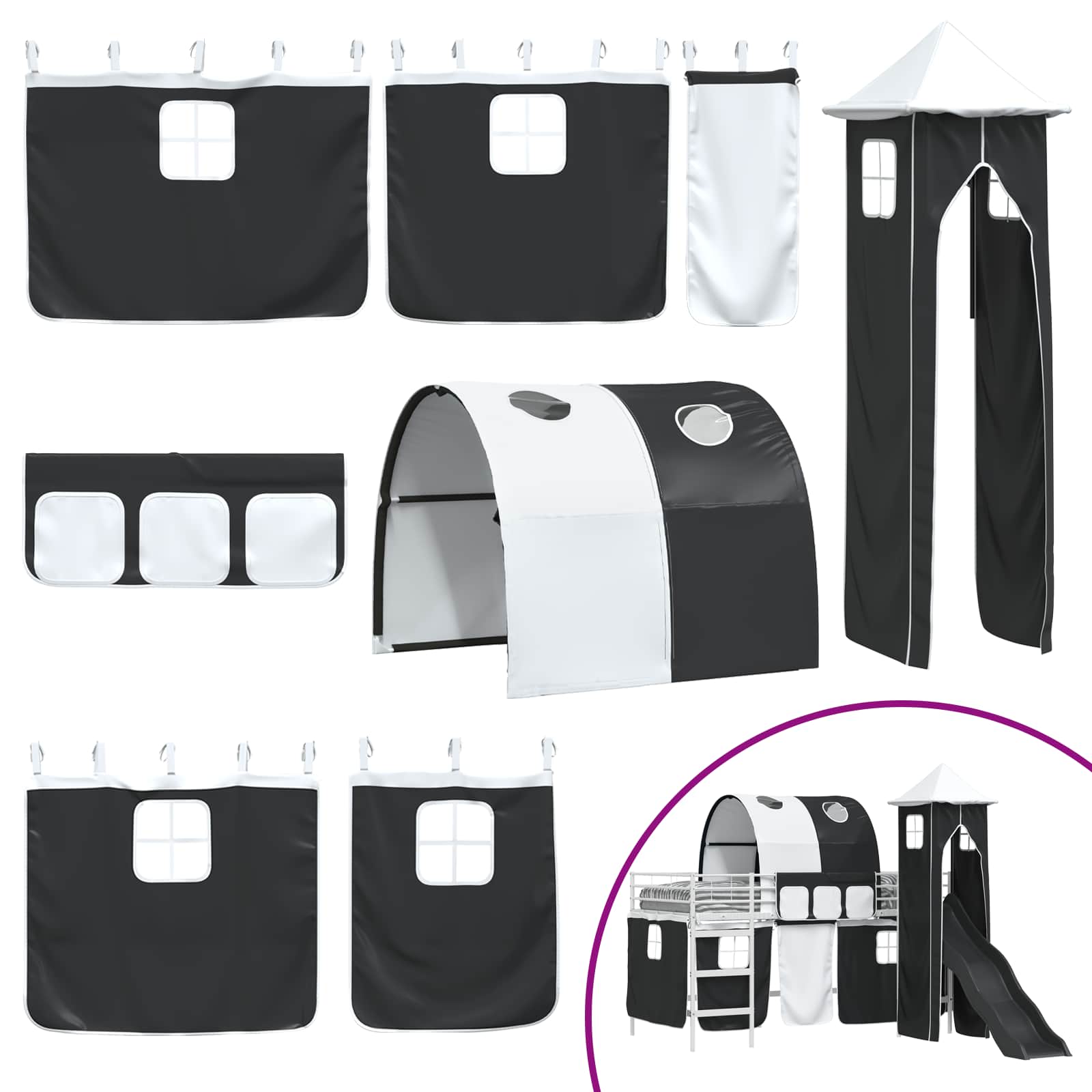 Dieser moderne Hochbett-Rahmen mit Vorhängen, Turm und Rutsche ist die perfekte Lösung für coole Kinderzimmer. Das frische Design sorgt dafür, dass es überall gut aussieht. Mit dem tollen Turm und der aufregenden Rutsche wird die Schlafenszeit zum Erlebnis. Das durchdachte Design macht es möglich, den Platz optimal zu nutzen und passt super zum aktiven Lebensstil von Kindern, denn es fördert Fantasie und Kreativität. So wird das Möbelstück zum echten Highlight im Kinderzimmer. Robuster Metallrahmen: Dieser Metallrahmen ist extrem stabil und hält den Abenteuern aktiver Kinder stand. Die matte Oberfläche sieht super aus und passt zu jedem Kinderzimmer-Stil. Sicherheit und Stabilität sind auch wichtig ? das Bett ist darauf ausgelegt, den täglichen Gebrauch zu überstehen. Spannende Rutsche und Turm: Mit der integrierten Rutsche und dem Turm wird das Schlafzimmer zum Spielplatz. Die Elemente fördern kreatives Spielen und machen es zu mehr als nur einem Bett ? hier wird Lernen mit Spaß kombiniert. Funktionale Vorhänge: Das Bett hat Vorhänge, die einfach zu handhaben sind und für einen ordentlichen Look sorgen. Die coolen blauen und schwarzen Farben der Vorhänge bringen ein bisschen Geheimnis und bieten gleichzeitig die Privatsphäre, wenn nötig. Der Bogen versteckt die Montage und sieht dazu noch gut aus. Matte Oberfläche: Die matte Lackierung hält Fingerabdrücke und Staub fern und sieht einfach schick aus. Das Design ist zeitlos und passt wunderbar in moderne Räume, während die Pflege minimal bleibt. Einfach zu reinigen: Für die Pflege reicht ein feuchtes Tuch, ohne aggressive Chemikalien. Befolge die Montageanweisung des Herstellers, um die Möglichkeiten des Bettes optimal zu nutzen und seine Lebensdauer zu verlängern. So ist es eine langlebige Wahl für Familien.