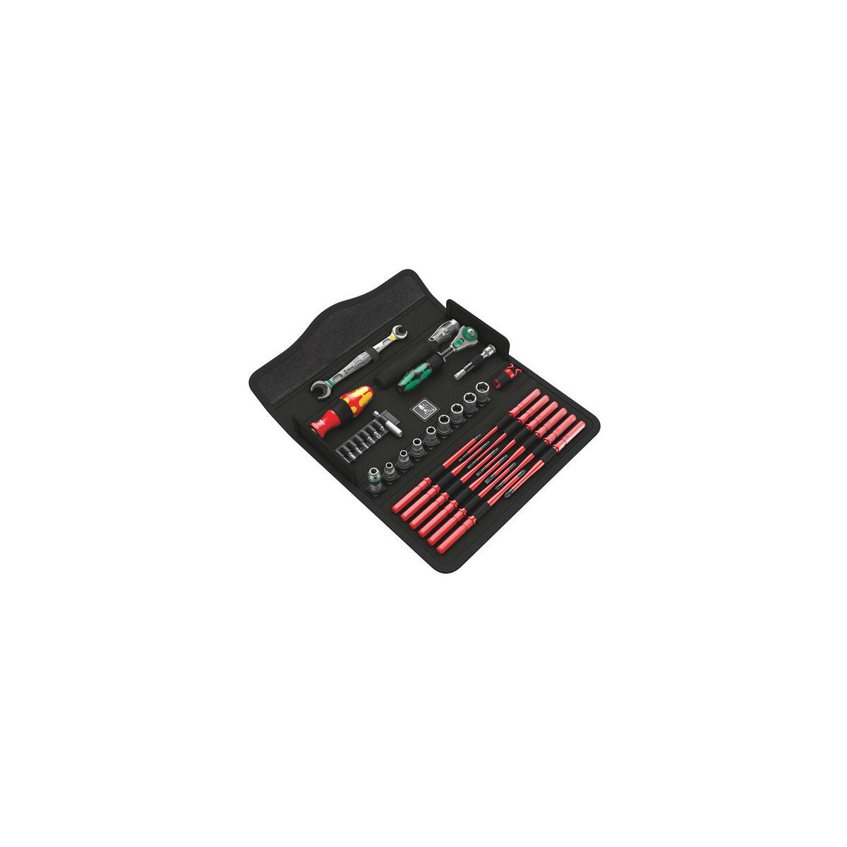 Kompaktes Werkzeug-Set mit den 35 wichtigsten Schraubwerkzeugen für Wartungsarbeiten im Innen- und Außenbereich. Mit VDE Handhalter samt 12 VDE Klingen; 1 Joker Doppelmaulschlüssel mit Haltefunktion, Endanschlag, kleinem Rückholwinkel und extrem zupackenden Zähnen; mit der unglaublich schnellen 1/4" Knarre Zyklop Speed samt Zubehör; 8 Hand- und Maschinennüssen Größe 5,5-13, 1 Universalbitshalter; 7 25mm Bits; 1 Schraubkralle zum Festhalten von Schrauben; 1 einpoliger Phasentester 247; textile Box mit sehr hoher Robustheit und Langlebigkeit; aufrecht positionierbar zur übersichtlichen Lagerung im Werkstattregal; zusätzlicher Oberflächenschutz durch textiles Außenmaterial; geringes Gewicht und Volumen für vereinfachte Mobilität.