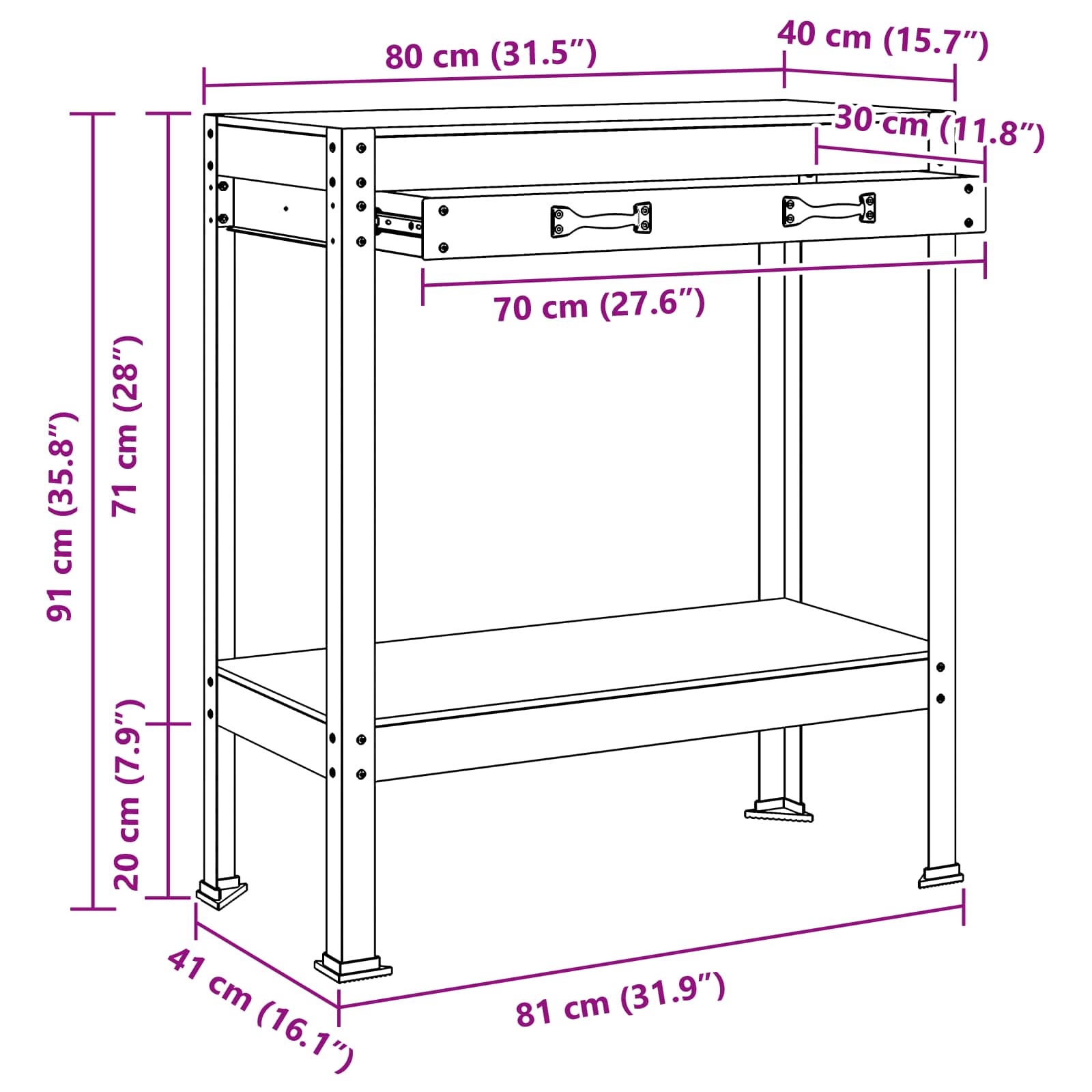 - Gesamtabmessungen: 81 x 41 x 91 cm (L x B x H)