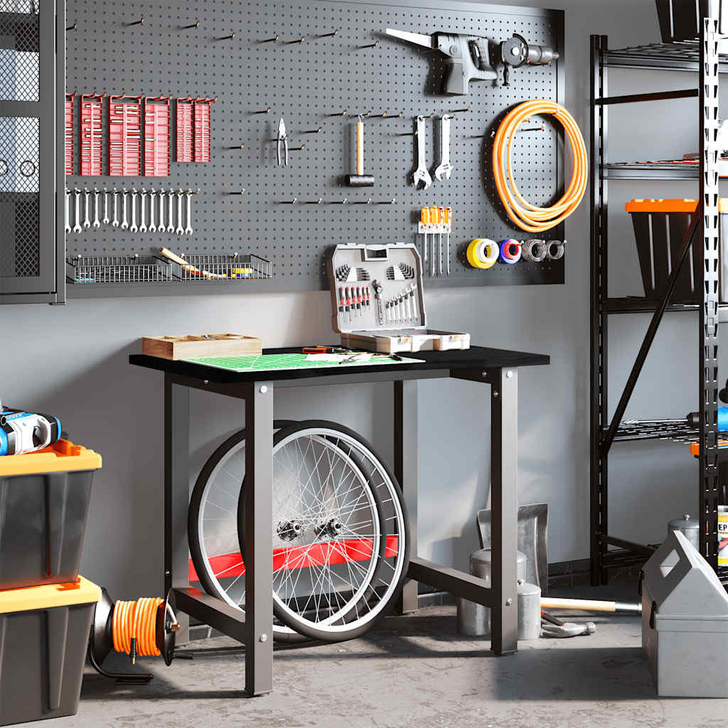 Die Werkbank ist ein großartiger Helfer, wenn du Reparaturarbeiten erledigen oder deine Heimwerker-Träume erfüllen möchtest! Robustes und stabiles Material: Massives Eichenholz ist für seine Festigkeit, Haltbarkeit und schöne Maserung bekannt, weshalb es sich hervorragend für die Herstellung von langlebigen Möbeln eignet. Durch ihre natürliche Beständigkeit gegen Insektenbefall und Schimmelbildung sehen Eichenmöbel selbst nach jahrelangem Gebrauch brandneu aus.Stabiles und haltbares Gestell: Aus pulverbeschichtetem Metall gefertigt, ist das Gestell robust, stabil, langlebig, korrosions- und witterungsbeständig und gewährleistet dadurch eine lange Lebensdauer.Großer Arbeitsbereich: Der Arbeitstisch verfügt über eine geräumige Arbeitsplatte, die Platz für Bohrer, Kabeltrommel und weiteres Werkzeugzubehör bietet.Vielseitig einsetzbar: Mit ihrem schlichten und klaren Design lässt sich die Werkbank je nach Bedarf auch als Arbeitstisch verwenden. Sie ist daher ein praktisches und bequemes Möbelstück. Gut zu wissen:Jedes Stück ist ein Unikat, das in Farbe und Maserung variiert. Die Lieferung erfolgt in zufälliger Reihenfolge, wodurch die Exklusivität und Individualität deines Produkts gewährleistet wird.Wir empfehlen, einen Schraubendreher anstelle einer elektrischen Bohrmaschine zu verwenden, um Holzrisse beim Anbringen der Beine zu vermeiden. Achtung:Die Tischplatte ist mit keinen vorgebohrten Löchern versehen und Schrauben sind nicht im Lieferumfang enthalten. Daher müssen die Löcher gebohrt und die Schrauben vor dem Zusammenbau dieses Arbeitstisches erworben werden.