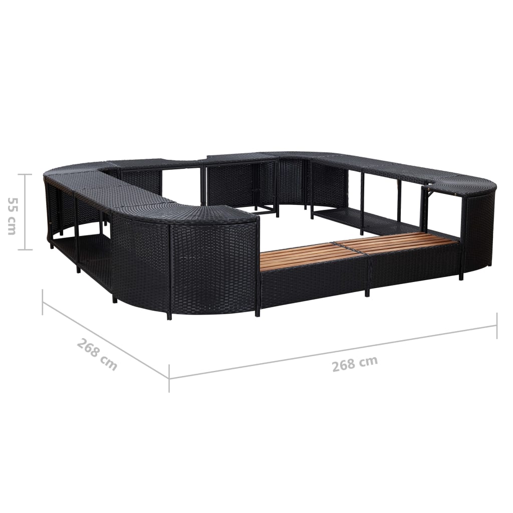 Diese elegante quadratische Whirlpool-Einfassung aus Poly-Rattan ist ein vielseitiges Zubehör für Ihren Whirlpool. Sie verleiht dem Pool ein schickes und modernes Aussehen und schafft gleichzeitig einen funktionalen und benutzerfreundlichen Whirlpoolbereich. Die aus wasserfestem PE-Rattan gefertigte Whirlpool-Umrandung ist pflegeleicht, strapazierfähig und für den täglichen Gebrauch geeignet. Der pulverbeschichtete Stahlrahmen macht die Spa-Einfassung stark und robust. Die Stufen sind aus massivem Akazienholz gefertigt, einem tropischen Hartholz, das witterungsbeständig und langlebig ist; es ist mit natürlichem Öl behandelt. Dieses Produkt ist leicht zu montieren. Sie werden den Komfort, die Langlebigkeit und das Flechtdesign dieser Whirlpool-Einfassung sicher zu schätzen wissen!