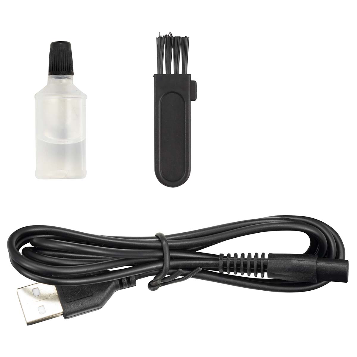 ? Im Lieferumfang enthaltenes Zubehör: 4 Aufsatzkämme (1/3/5/7 mm), kleine Reinigungsbürste, Trimmerpflegeöl, USB-Ladekabel
