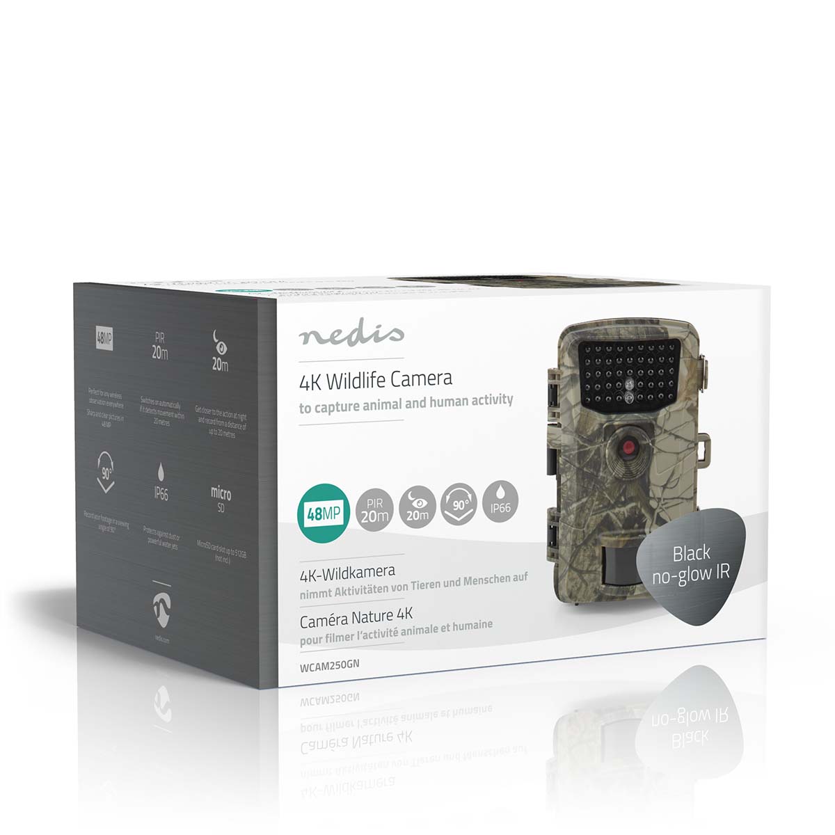 Mit dieser 4K-Wildkamera von Nedis verpassen Sie nie wieder Aktivitäten von Tieren oder Menschen. Bringen Sie sie einfach mit dem mitgelieferten Befestigungsgurt an einem Baum oder Pfosten an. Die Kamera nimmt spektakuläre Aufnahmen auf, und hat eine mehrere Stunden umfassende Speicherkapazität, um Rotwild bei seinen Streifzügen durch den Wald aufzuzeichnen oder einen Bären oder Wolf auf Erkundungstour abzulichten. Tagsüber und nachts liefert diese Kamera fantastische 48-Megapixel-Bilder und 4K-Videos.