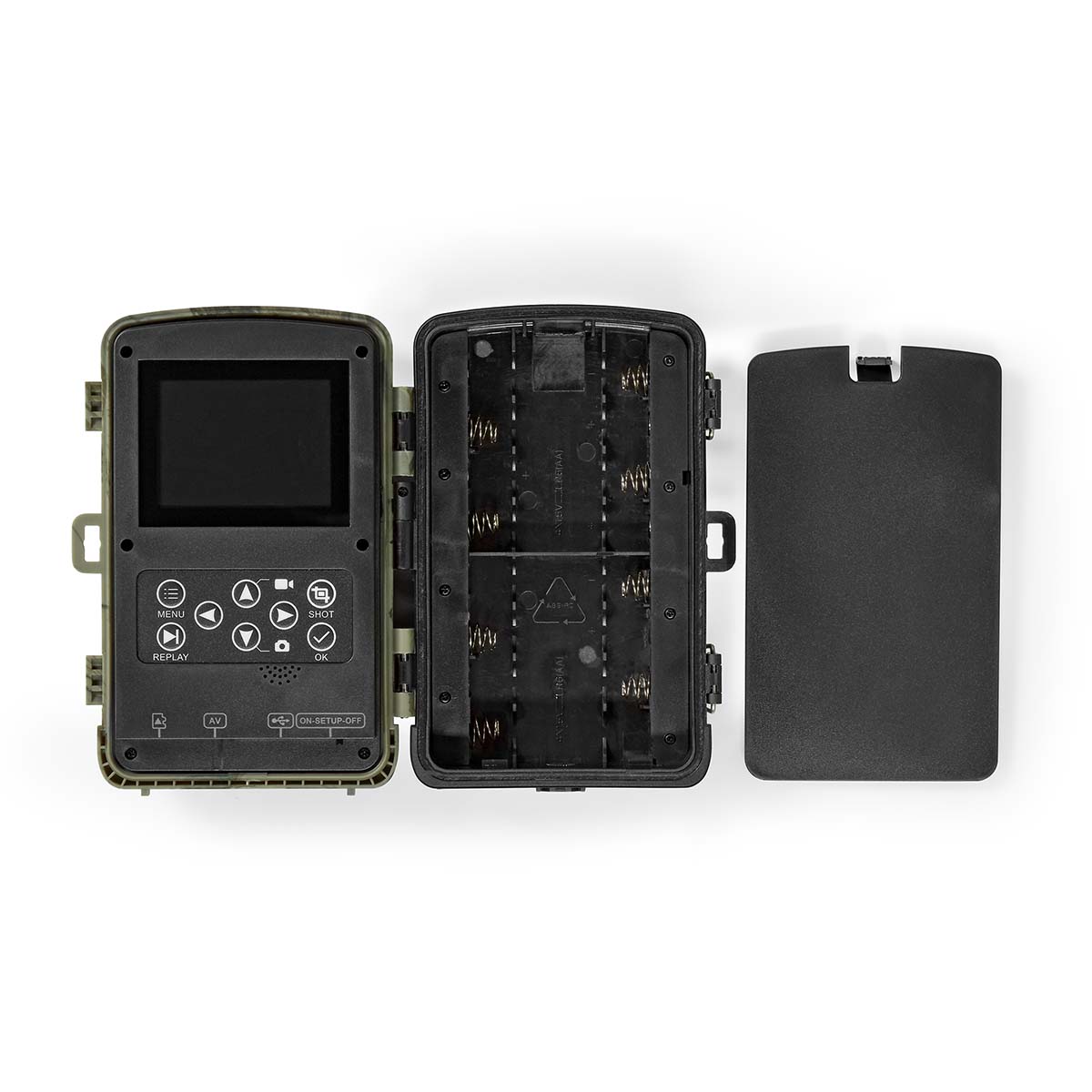 Die Wildkamera verfügt über ein kompaktes Design mit Camouflage-Muster, und die Schutzart IP66 gewährleistet Schutz vor Staub und Wasser. Dank all dieser Eigenschaften eignet sie sich auch zum Schutz Ihres Grundstücks. Das 2,3-Zoll-Display ermöglicht eine einfache Einrichtung der Kamera und sofortige Wiedergabe der Aufnahmen.