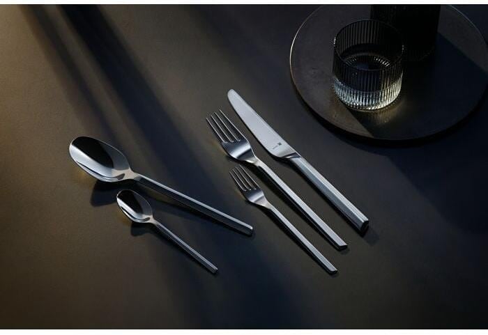 WMF Kineo ist das Besteck von WMF für Individualisten, die genau wissen, was sie wollen. Es vereint kontrastierende symmetrische und asymmetrische Linien zu einer verblüffenden, markanten und mutigen Ästhetik, die alle Blicke auf sich zieht. Das ergonomisch geformte Besteck-Set liegt perfekt in der Hand und ist mit dem patentierten Härteverfahren Cromargan protect für besonders hohe Widerstandsfähigkeit gegen Kratzer und Gebrauchsspuren behandelt. Die Messerklingen aus geschmiedetem und gehärtetem Spezialklingenstahl wurde entwickelt für langanhaltende Schärfe und Flexibilität. Das WMF Kineo Besteck-Set ist darüber hinaus selbstverständlich zur mühelosen Reinigung spülmaschinenfest und wird in einem hochwertigen Besteckkasten zur genauso sicheren wie praktischen Aufbewahrung geliefert.
