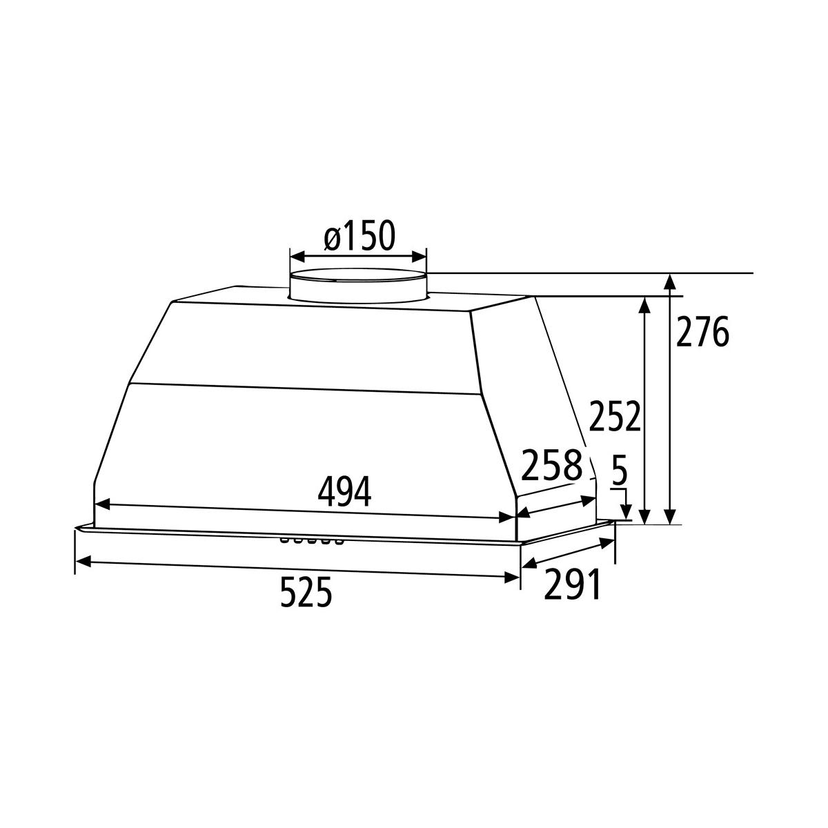 Wolkenstein W EB1-52AIXPY Einbauhaube, 52,5 cm breit, 593 m/h, Drucktasten, 3 Leistungsstufen, LED Beleuchtung, Edelstahlblende