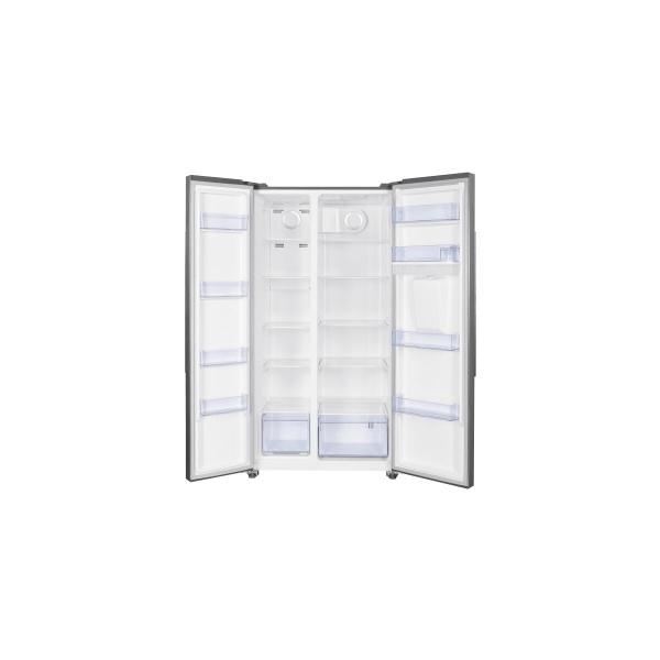 Holen Sie sich mit den Side by Side Türen ein echtes Platzwunder in die Küche, welches genügend Lagerfläche für eine Vielzahl von Lebensmitteln bietet. Weiterhin besticht der Kühlschrank durch hohe Funktionalität. Die Kühlraum verfügt über einen Wasserspender mit 2 Liter Volumen. Zusätzlich sorgt das innovative NoFrost-System im Kühl-und Gefrierbereich durch Verringerung der Luftfeuchtigkeit dafür, dass sich kein Frost an den Kühlschrankinnenwänden bildet. Dies spart Stromkosten ein, da die Kühlung nicht erst durch die Eisschicht durchdringen muss.