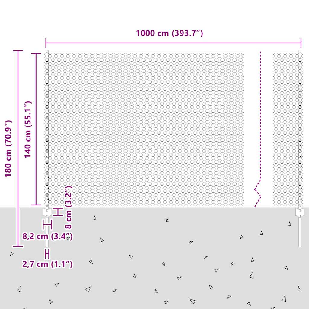 Dieses graue Metall-Hexagon-Gartenzaunset ist perfekt, um deinen Außenbereich aufzupeppen und zu sichern. Sein stabiles und modernes Design passt ideal in jeden Garten oder Hof und kombiniert Praktikabilität mit Stil, um deine Haustiere und Kinder zu schützen. Robust gebaut: Aus hochwertigem Metall und Kunststoff gefertigt und bereit, harten Wetterbedingungen standzuhalten. Wetterfest: Hält allen Bedingungen stand und behält dabei sein gutes Aussehen und seine Stärke. Modernes Design: Die matte graue Oberfläche sorgt für einen zeitgemäßen Look und ist dabei praktisch. Einfache Montage: Schnell aufzubauen mit einem klaren Handbuch und den notwendigen Grundwerkzeugen. Komplettes Set: Jedes Paket enthält eine Rolle Hexagon-Masche und fünf solide Pfosten für einen kompletten Zaun.