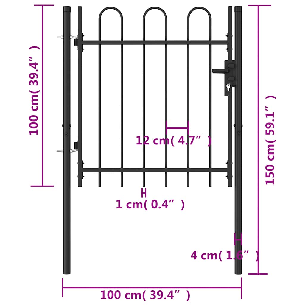 Dieses Gartentor wird eine moderne, praktische Barriere sein, die Ihren Garten von der Außenwelt trennt. Äußerst stabil und haltbar, wird das Zauntor eine praktische Barriere für Ihren Garten, Innenhof oder Ihre Terasse sein. Die vertikalen Stangen verfügen über Enden in Bogenform und die horizontalen Streben dienen zur Rahmenstärkung. Somit wird Ihnen unser Gartentor einen hohen Maß an Privatsphäre und Sicherheit bieten und zugleich einen fabelhaften Eingang zu Ihrem Grundstück darstellen. Gefertigt aus Hochleistungsstahl, ist das Tor zum Schutz vor Rost und Korrosion pulverbeschichtet. Darüber hinaus wird es mit einem Bolzenscharnier zur Schnellverriegelung sowie mit Montagepfosten zur einfachen Installation geliefert. Drei passende Schlüssel sind ebenfalls im Lieferumfang enthalten. Dieses Tor ist eine großartige Kombination aus Stil, Festigkeit, Stabilität und Korrosionsbeständigkeit!