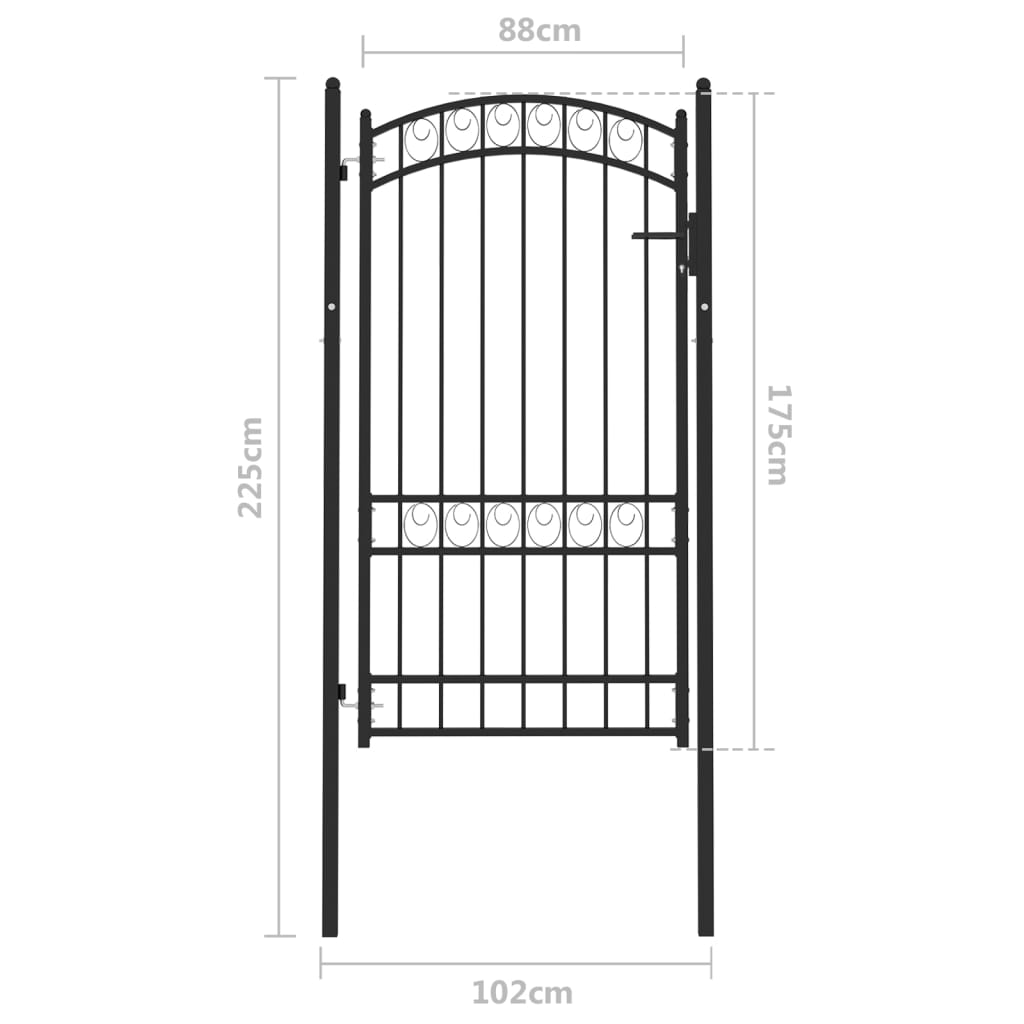 Dieses Zauntor bildet eine praktische Sicherheitsbarriere für Ihren Garten, Ihren Innenhof oder Ihre Terrasse. Dank der eleganten Bogenform und der starken horizontalen Verstrebungen zur Verstärkung des Rahmens bietet dieses Gartentor ein hohes Maß an Sicherheit und bildet gleichzeitig einen fabelhaften Zugang zu Ihrem Grundstück. Das aus robustem Stahl gefertigte Zauntor hat eine robuste Konstruktion und wurde gegen Rost und Korrosion pulverbeschichtet. Es wird mit zwei stabilen Pfosten und stabilen Scharnieren für eine einfache Installation geliefert, und ein Schließsystem mit drei passenden Schlüsseln ist ebenfalls im Lieferumfang enthalten.