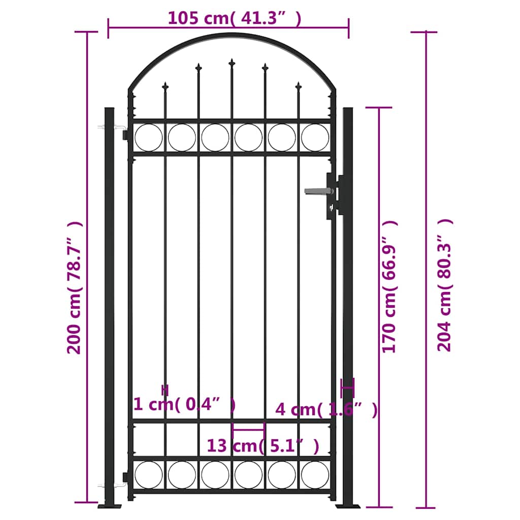 Dieses Gartentor im zeitgenössischen Stil dient als praktischer Eingang zu Ihrem Garten, der von der Außenwelt dadurch abgegrenzt wird. Das äußerst stabile und langlebige Zauntor kann eine sichere Absperrung für Ihren Garten, Innenhof oder Ihre Terasse bilden. Mit seiner eleganten, gewölbten Form und robusten, horizontalen Streben zur Verstärkung des Rahmens bietet unser Gartentor ein hohes Maß an Sicherheit und bildet einen fabelhaften Eingang zu Ihrem Grundstück. Das aus hartem Stahl gefertigte Tor ist pulverbeschichtet und somit gegen Rost und Korrosion geschützt. Zudem ist dieses Zauntor mit zwei robusten Pfosten und stabilen Scharnieren für eine einfache Installation ausgestattet. Es wird mit einem robusten Verriegelungssystem mit drei passenden Schlüsseln geliefert. Dieses Gartentor bildet eine großartige Kombination aus Stil, Stärke, Stabilität und Korrosionsbeständigkeit!