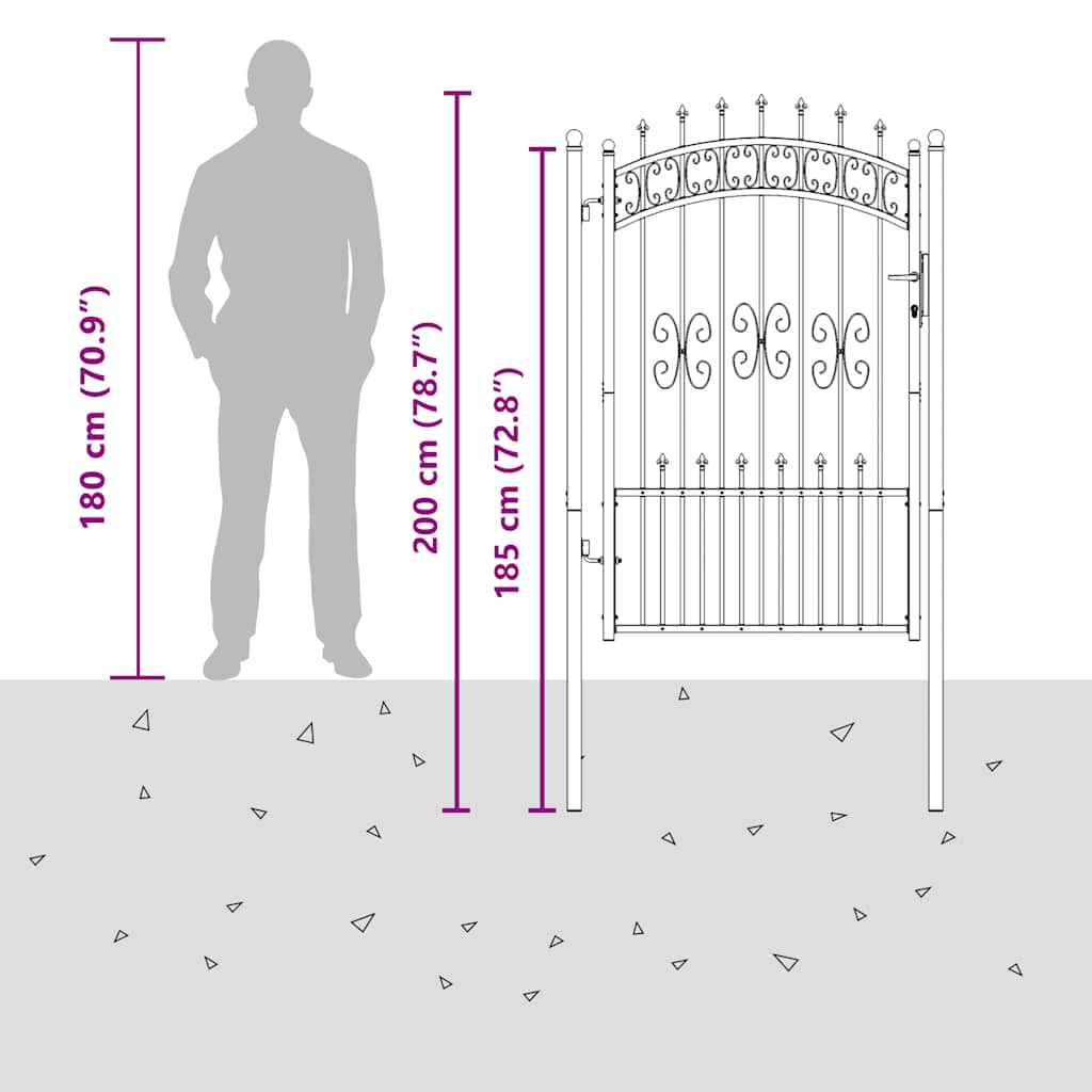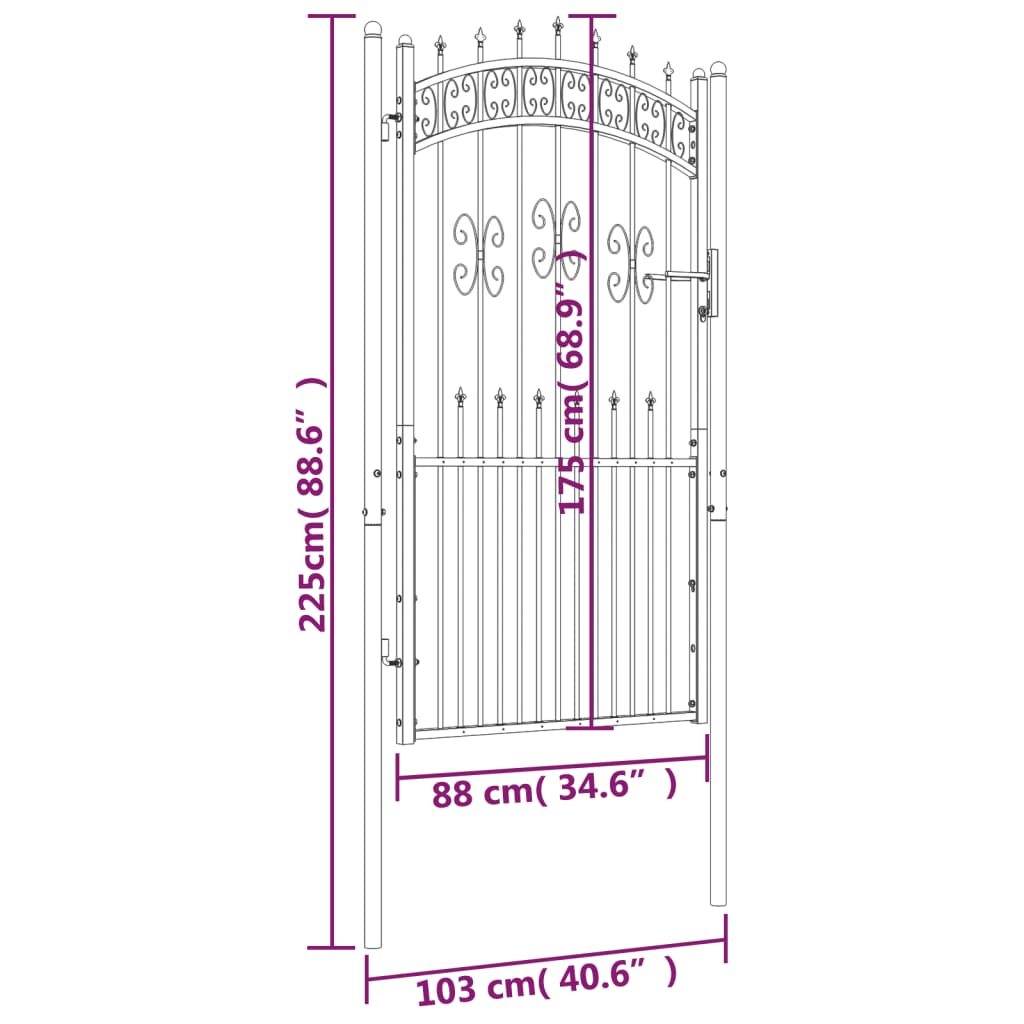Zauntor mit Speerspitzen Schwarz 103x225 cm Stahl