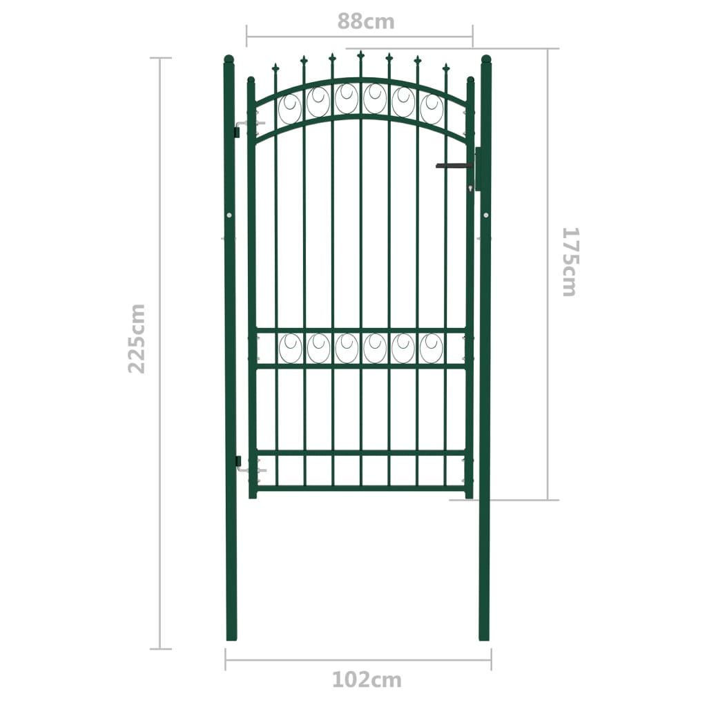 Dieses Zauntor bildet eine praktische Sicherheitsbarriere für deinen Garten, deinen Innenhof oder deine Terrasse. Aus Hochleistungsstahl gefertigt, besitzt das Zauntor eine robuste Konstruktion und ist dank der Pulverbeschichtung auch gegen Rost und Korrosion geschützt. Mit vertikalen Stangen mit Spitzen und einer robusten horizontalen Strebe als Verstärkung versehen, bietet dieses Gartentor ein hohes Maß an Sicherheit. Das gewölbte Oberteil trägt zu seiner Eleganz bei. Das Tor wird samt zwei stabilen Pfosten und robusten Scharnieren geliefert, die für eine einfache Montage sorgen. Ein Schließsystem mit drei passenden Schlüsseln ist ebenfalls im Lieferumfang enthalten.